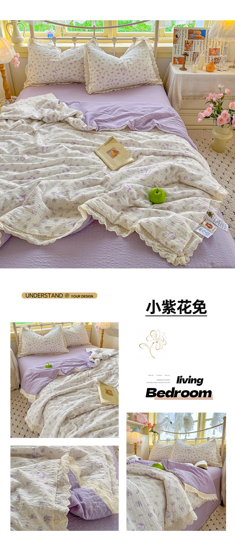 (总)2025新款A类云感提花纱布棉皱皱纱四件套(贴布风),风信子,可可栗子,快乐兔,玫瑰小能,美娜滋,蘑菇森林,淘气奶兔,紫色梦境,汪汪乐园