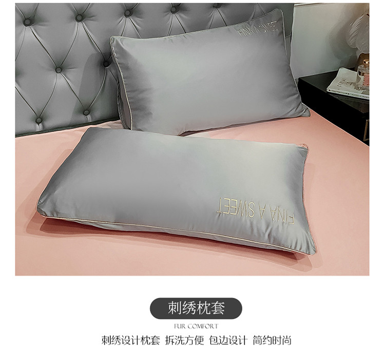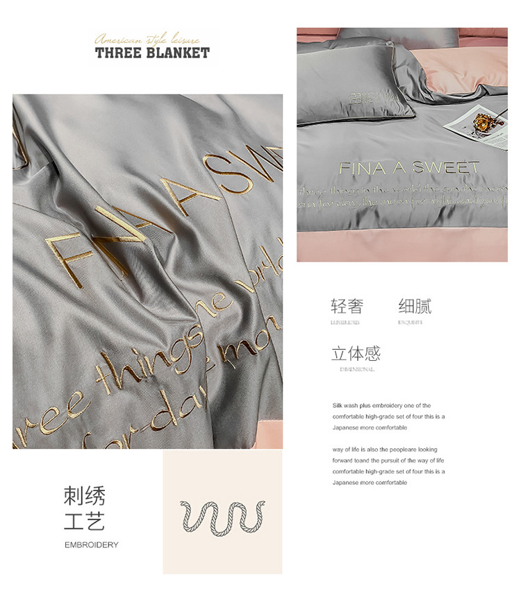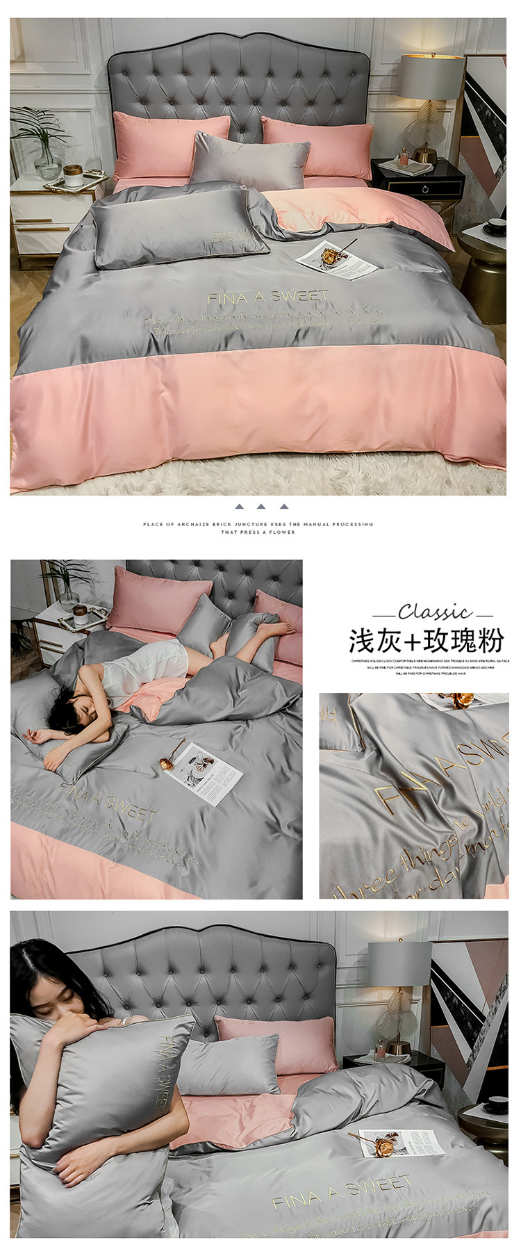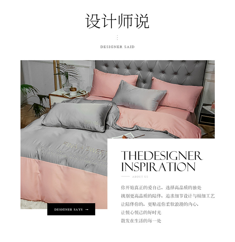 润缦 2020新款水洗真丝四件套双拼系列 浅灰+玫瑰粉