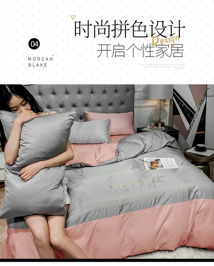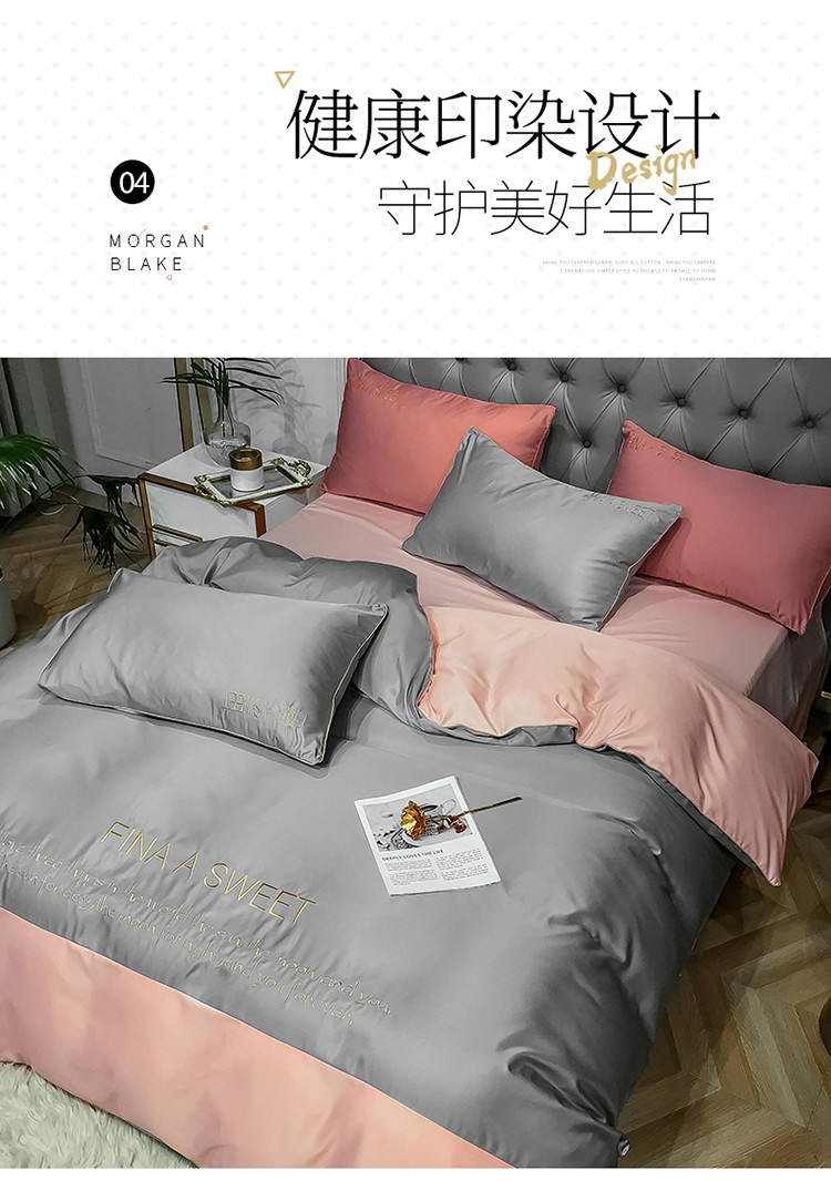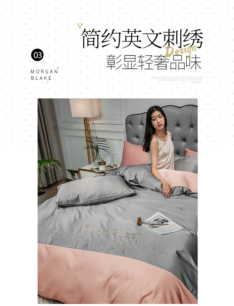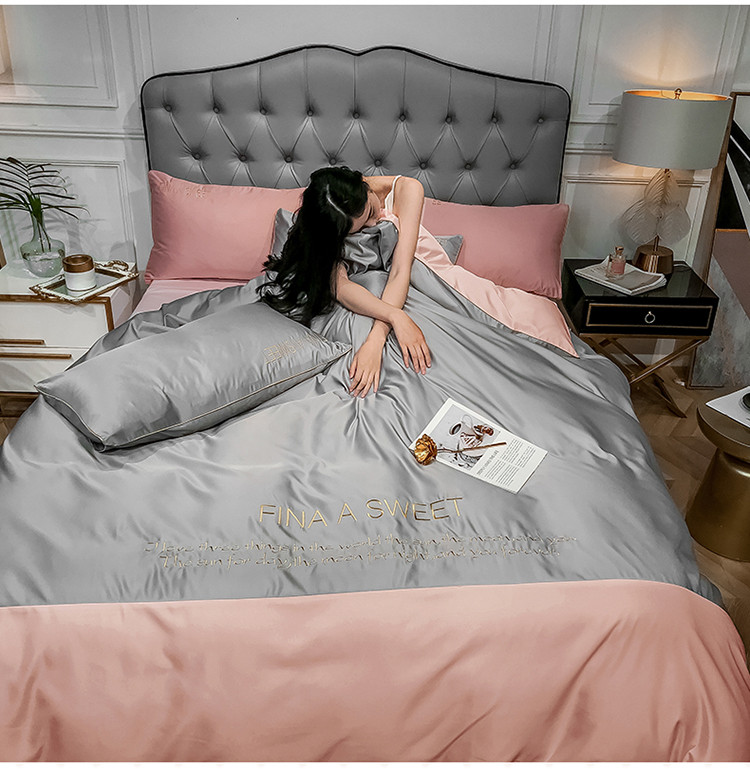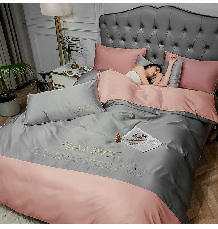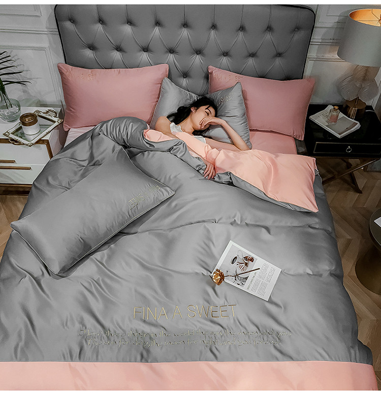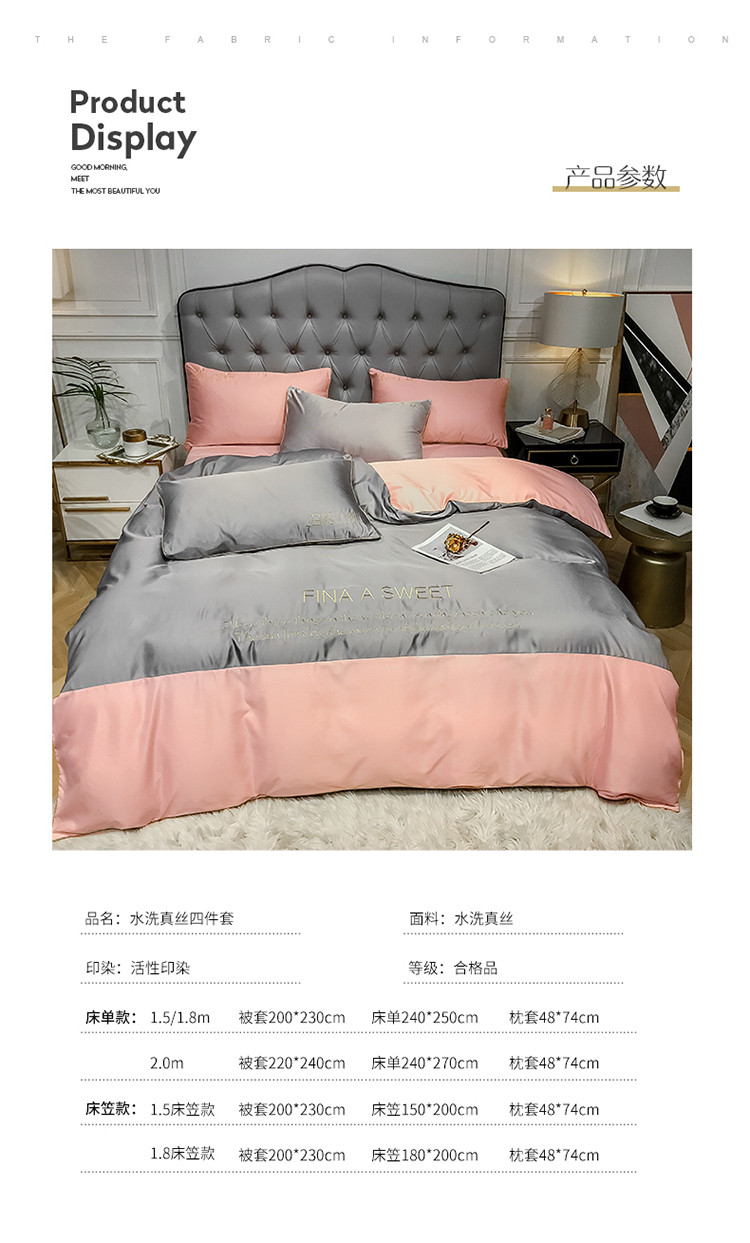 商品名称:润缦 2020新款水洗真丝四件套双拼系列 浅灰+玫瑰粉