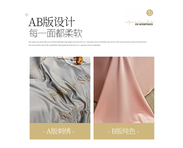 (总)润缦 2020新款水洗真丝四件套双拼系列,宾利蓝+浅豆沙,灰草绿+玫瑰粉,姜黄+绅士灰,墨绿+姜黄,浅豆沙+浅石兰,浅豆沙+绅士灰,浅灰+玫瑰粉,浅灰+绅士灰,月光蓝+梵星蓝,中国红