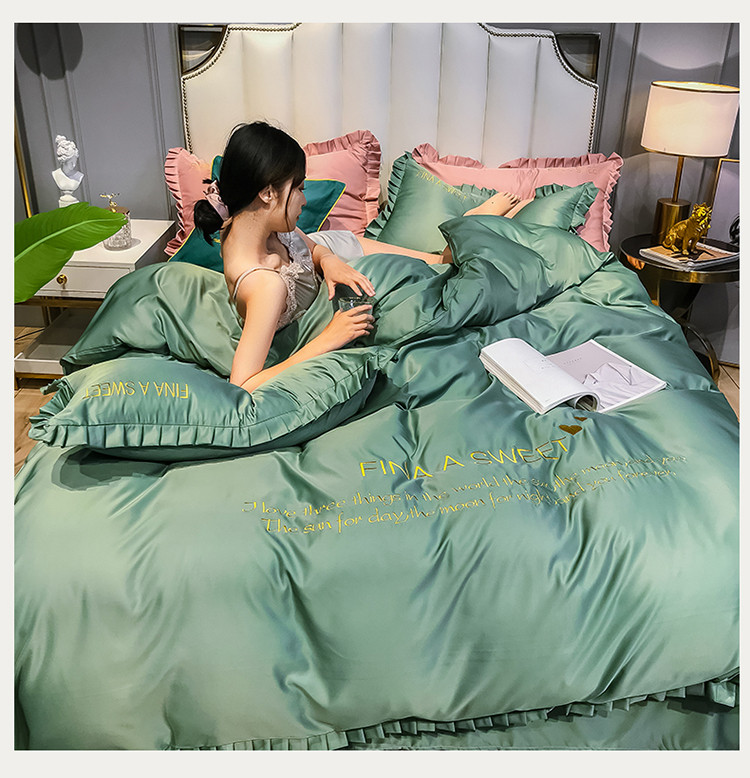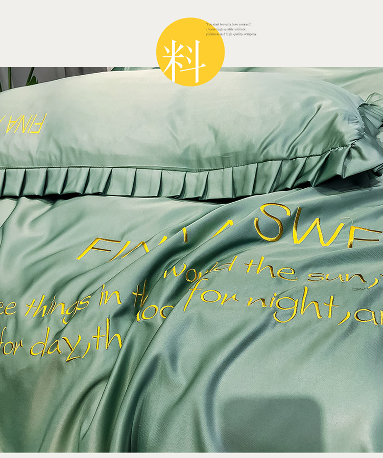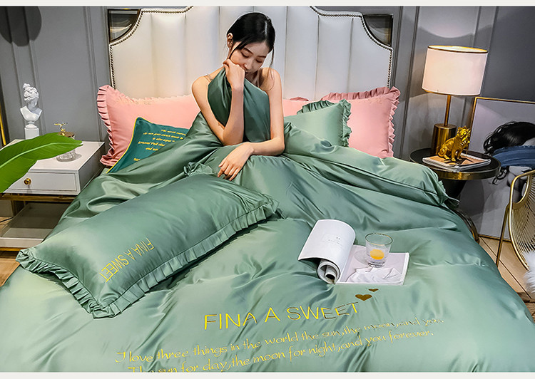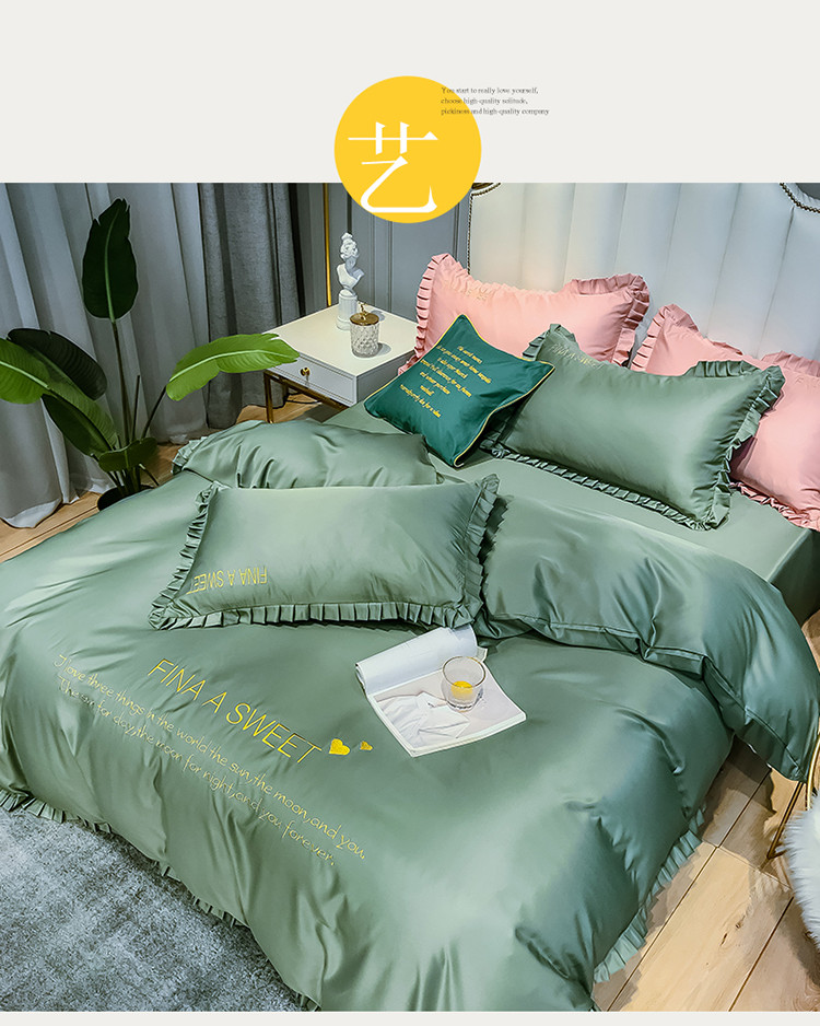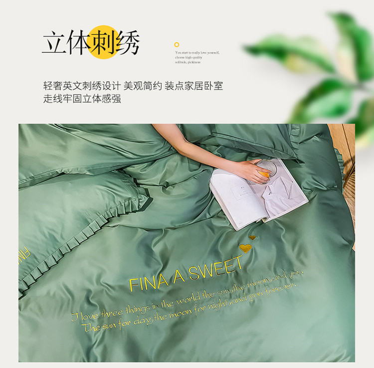 商品名称:润缦 2020新款水洗真丝四件套爱心系列 爱心-灰草绿