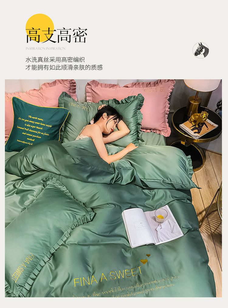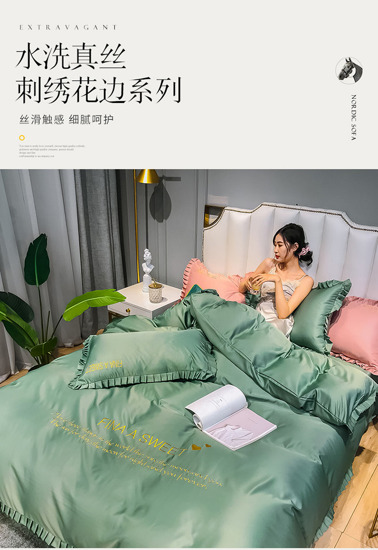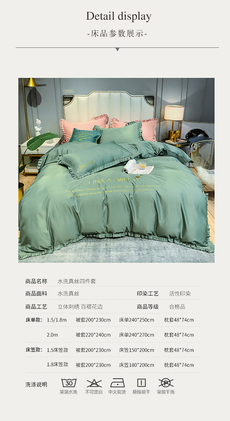 (总)润缦 2020新款水洗真丝四件套爱心系列,爱心-宾利蓝,爱心-豆沙,爱心-梵星兰,爱心-灰草绿,爱心-玫瑰粉,爱心-墨绿,爱心-浅灰,爱心-中国红