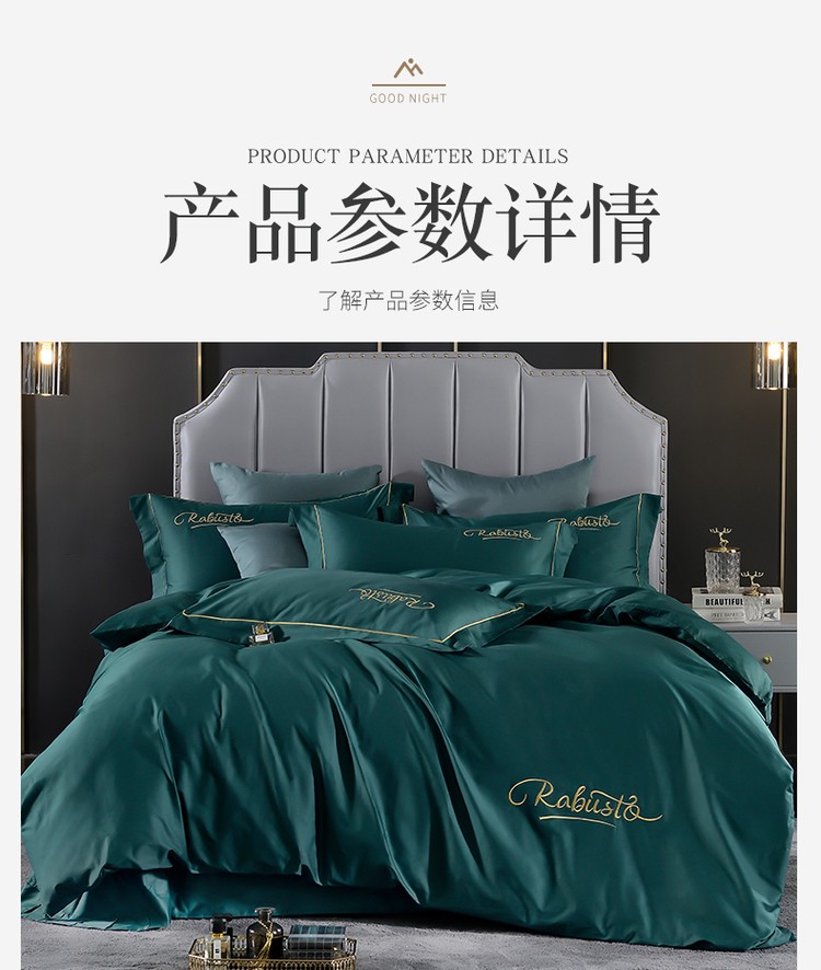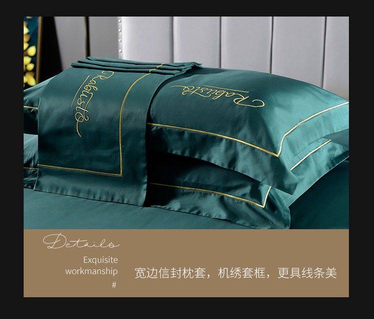 柔觉家纺 天丝刺绣贡缎提花全棉四件套,柔梦-抹茶绿