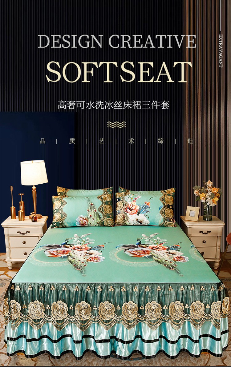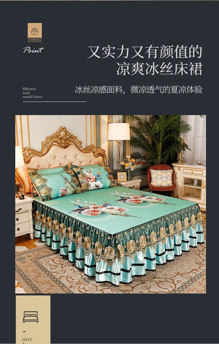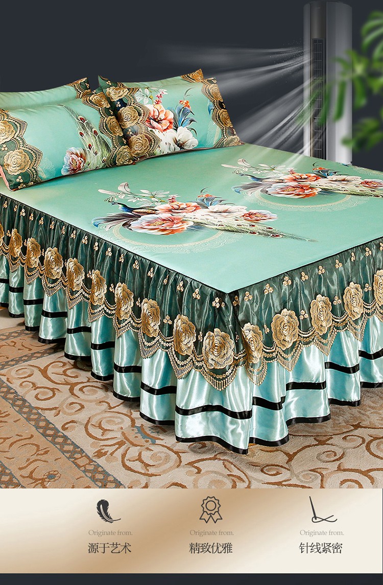 商品名称:瑞宝 2025新款高奢可水洗冰丝凉席床裙三件套 恋人