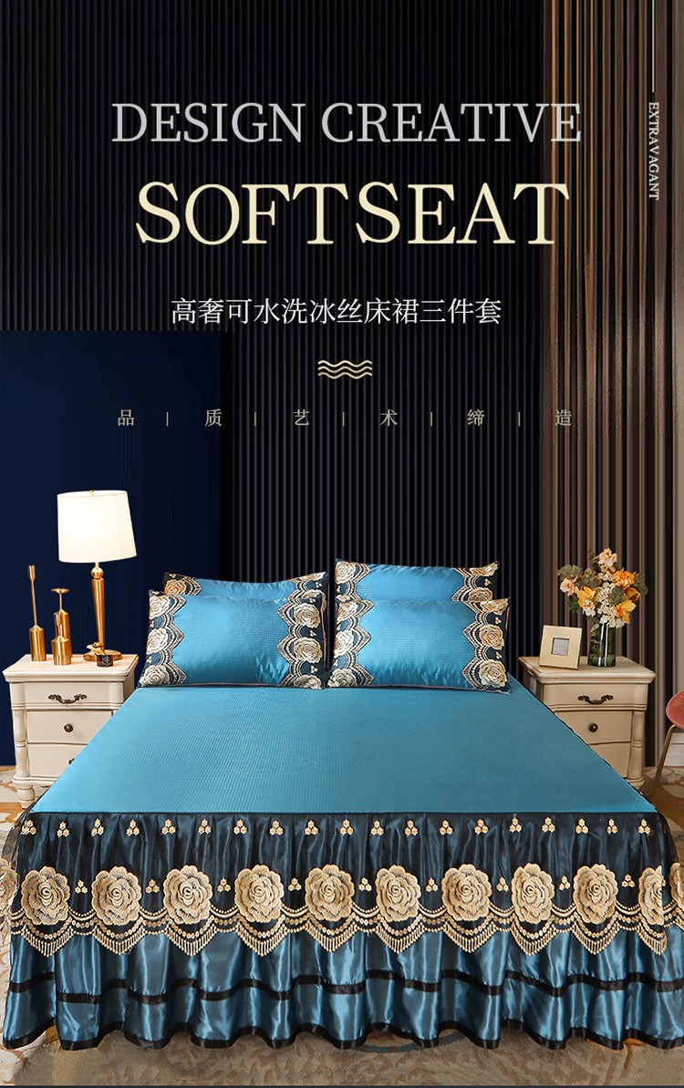 (总)瑞宝 2025新款雕花牛奶绒夹棉床裙三件套-花有约,花有约-粉玉,花有约-青柠绿,花有约-奶油白,花有约-蔚蓝,花有约-卡其,花有约-梦幻紫