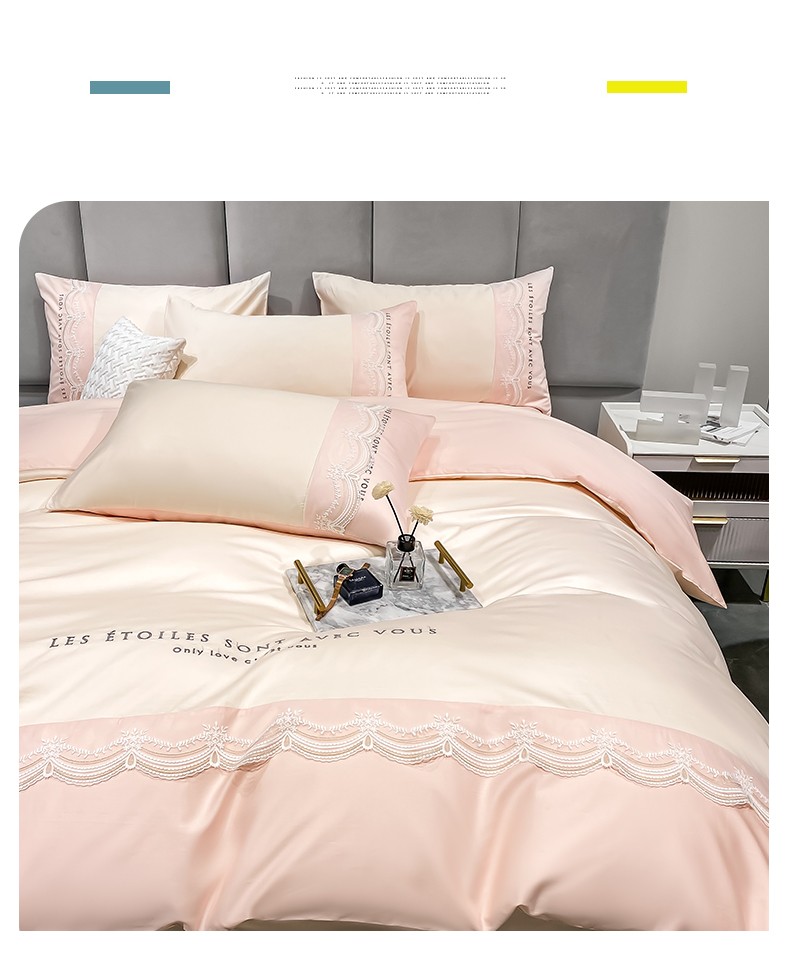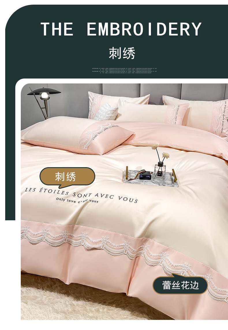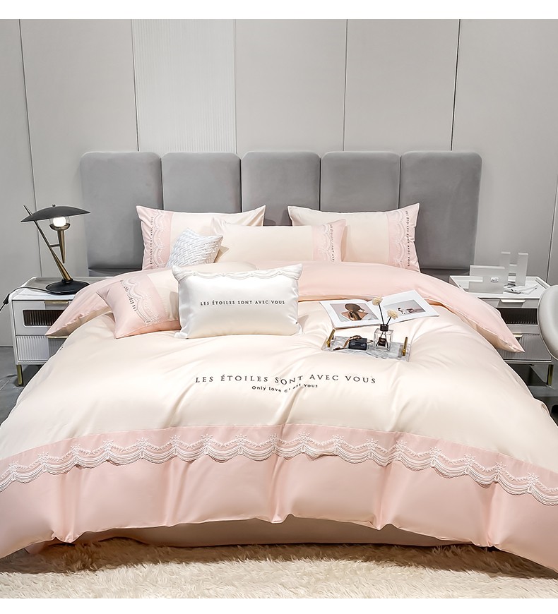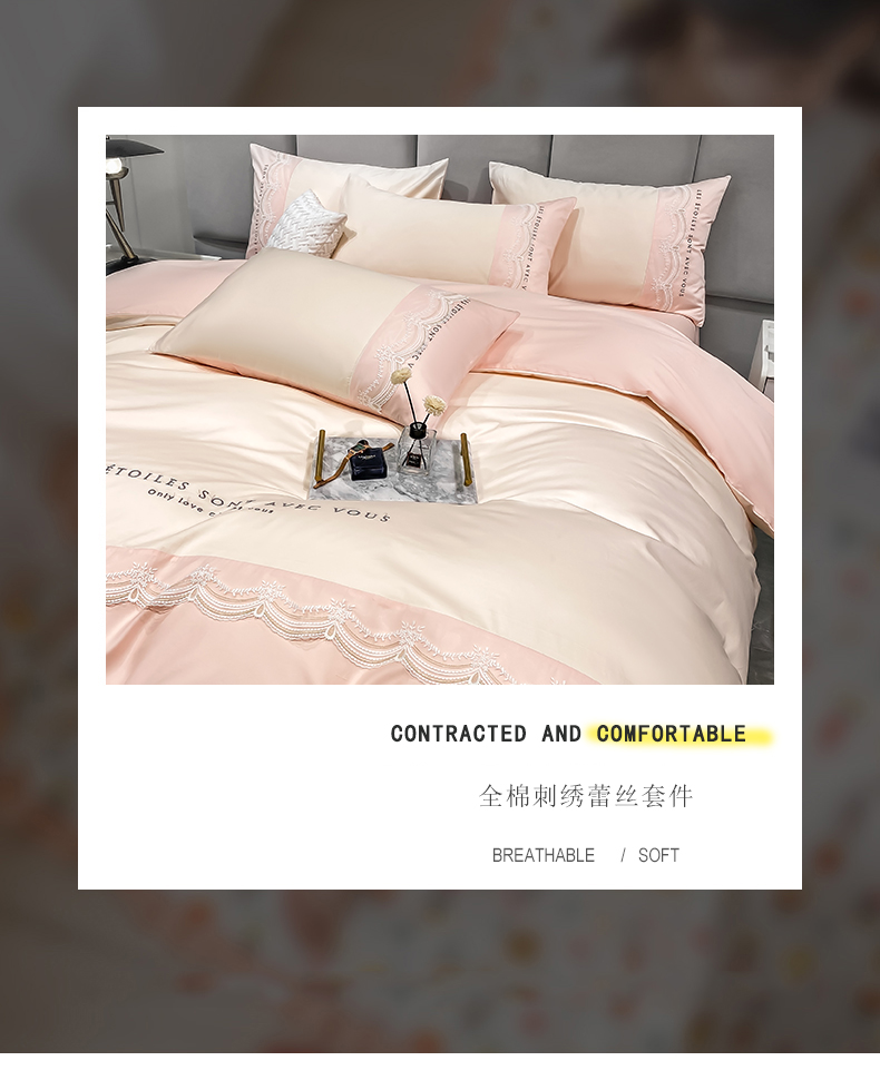 安妮 2022新款全棉刺绣蕾丝四件套-艾琳 艾琳-玉粉