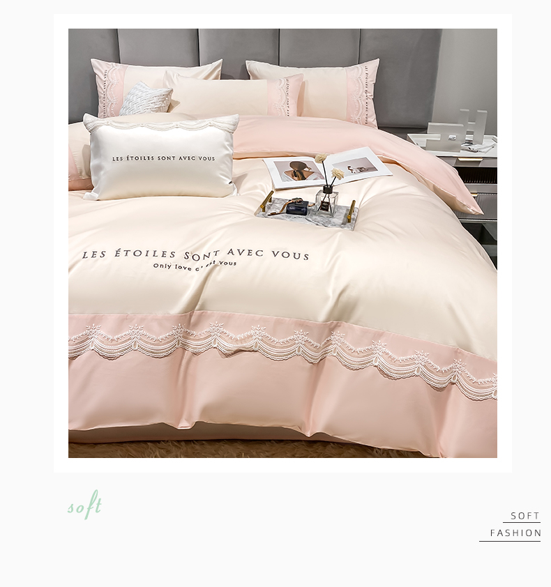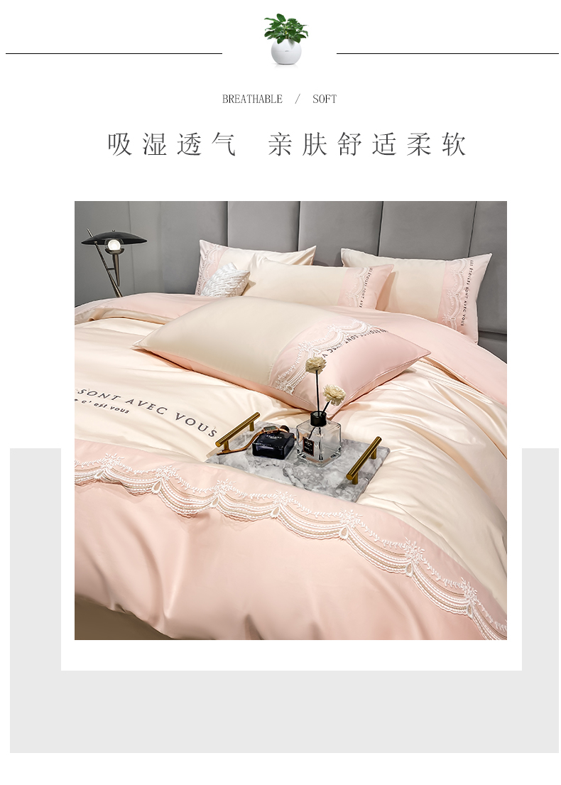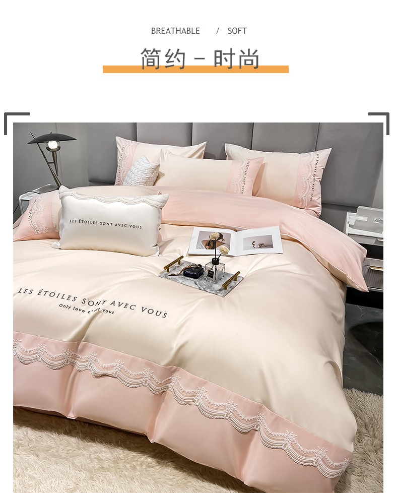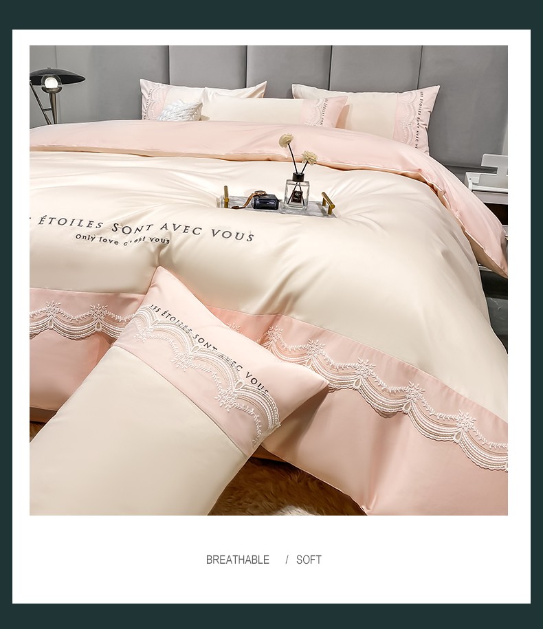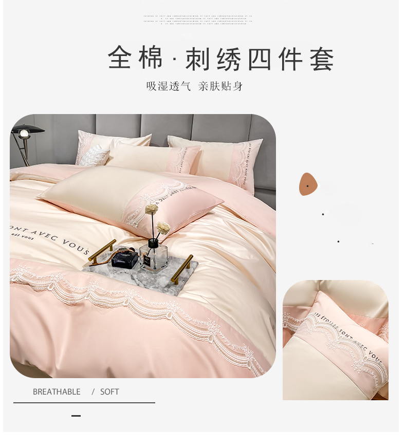 安妮 2022新款全棉刺绣蕾丝四件套-艾琳 艾琳-玉粉
