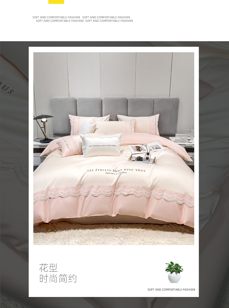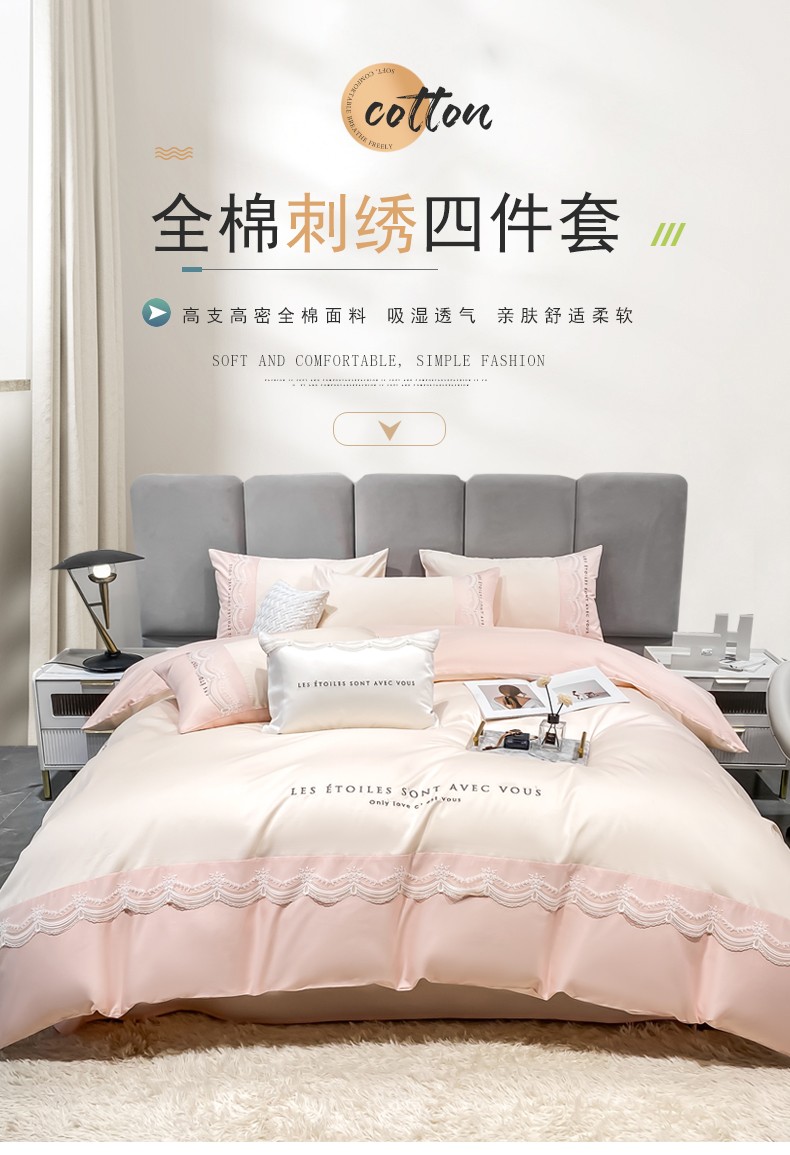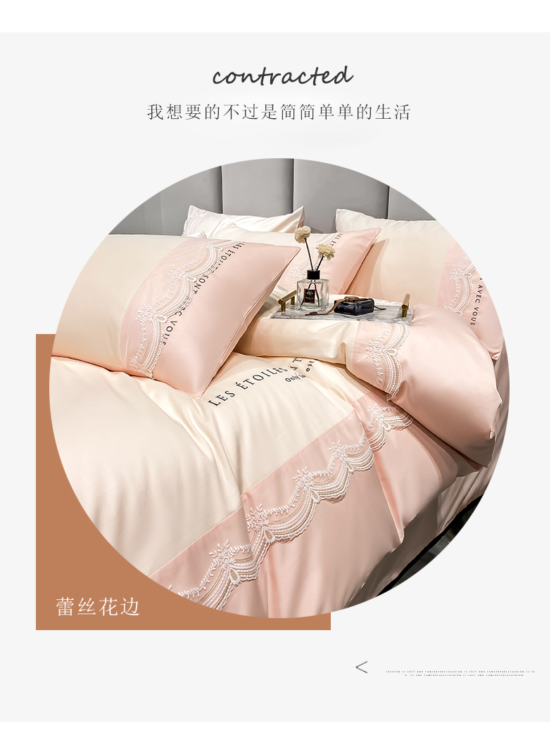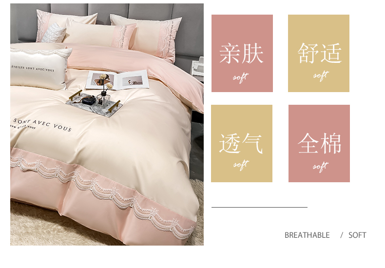 商品名称:安妮 2022新款全棉刺绣蕾丝四件套-艾琳 艾琳-玉粉