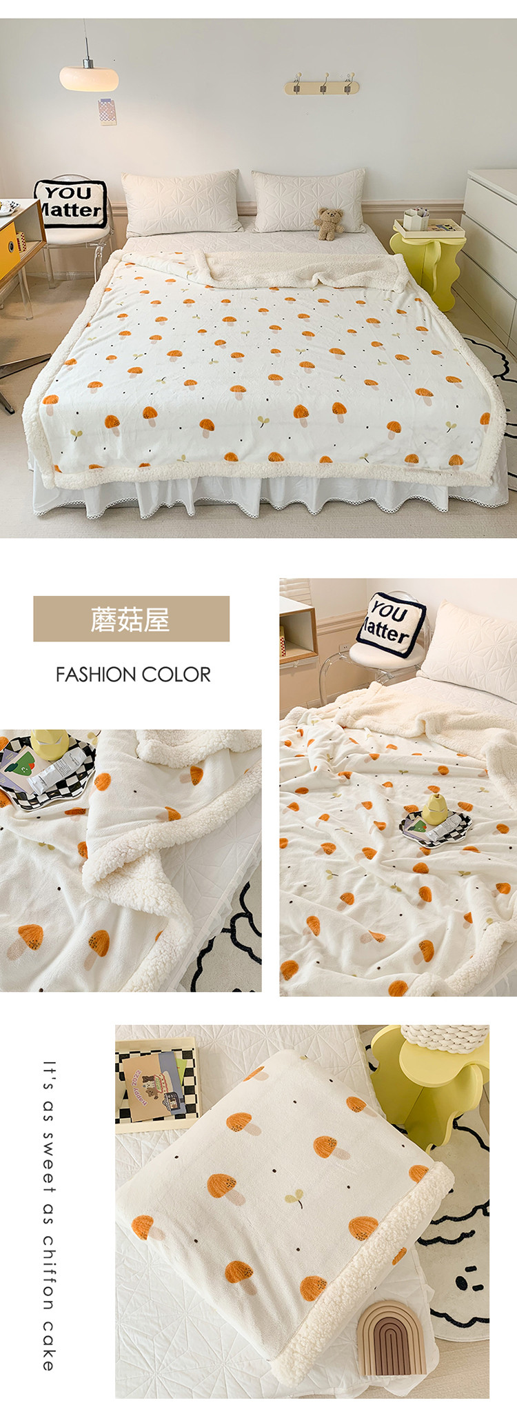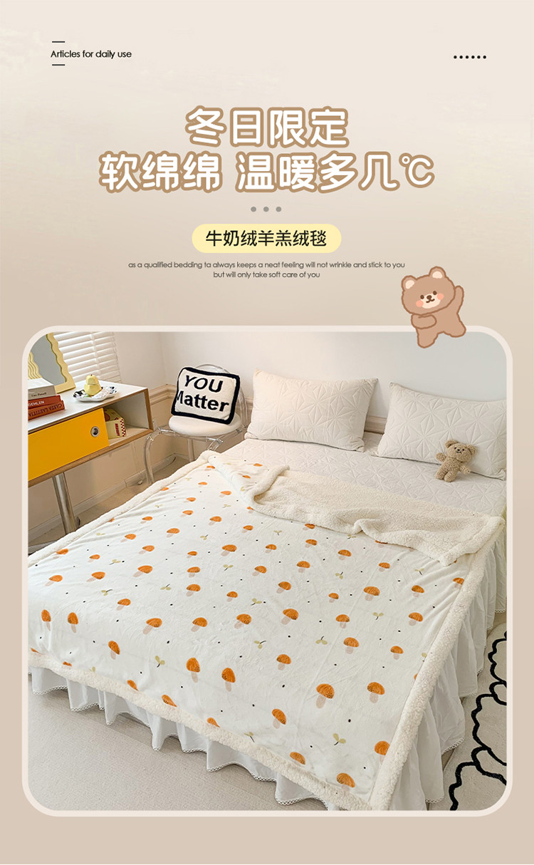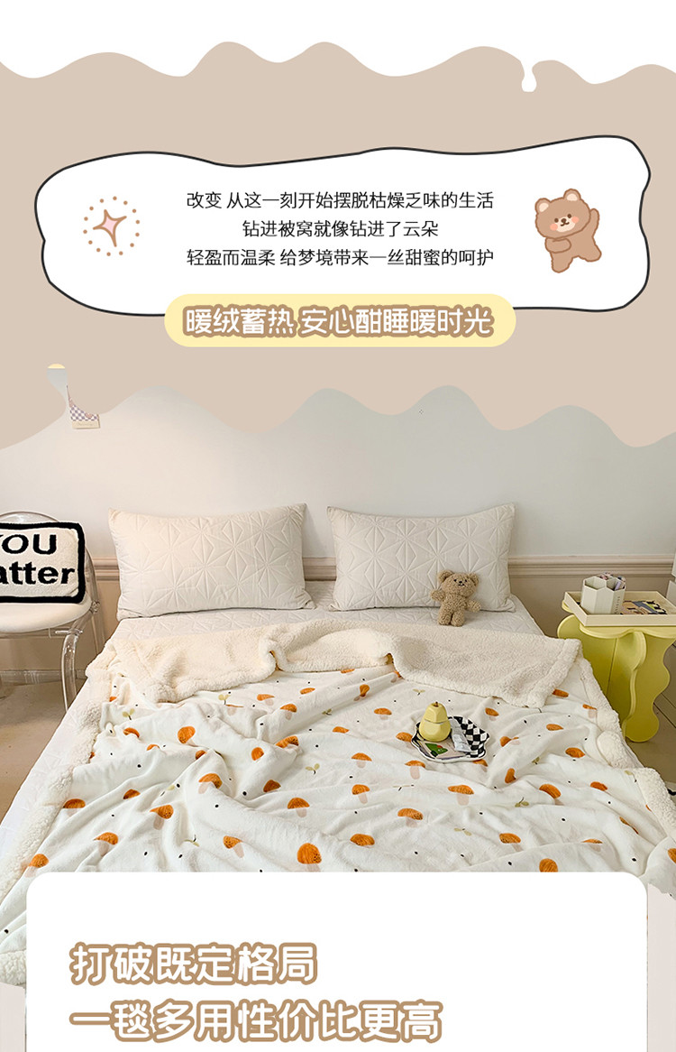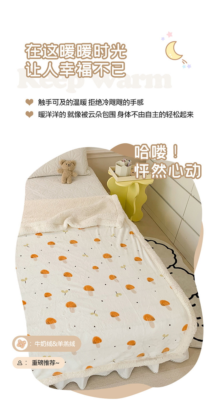 商品名称:澳萝拉 2022新款牛奶绒羊羔绒毛毯 蘑菇屋