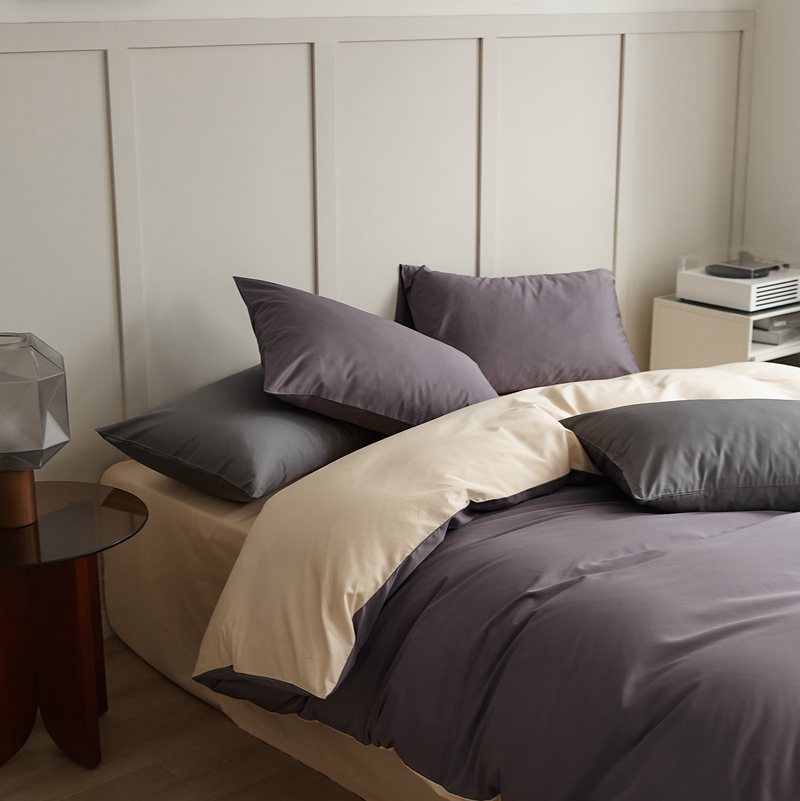 当前位置: 91家纺网 > 商品网购 > 床品套件 > 四件套 > 长绒棉四件套 > 原研 2022新款100支长绒棉纯色双拼系列四件套 加文紫