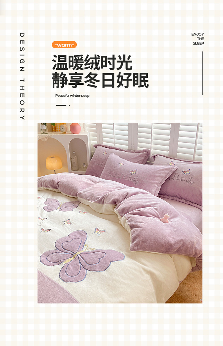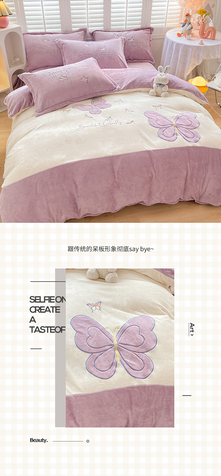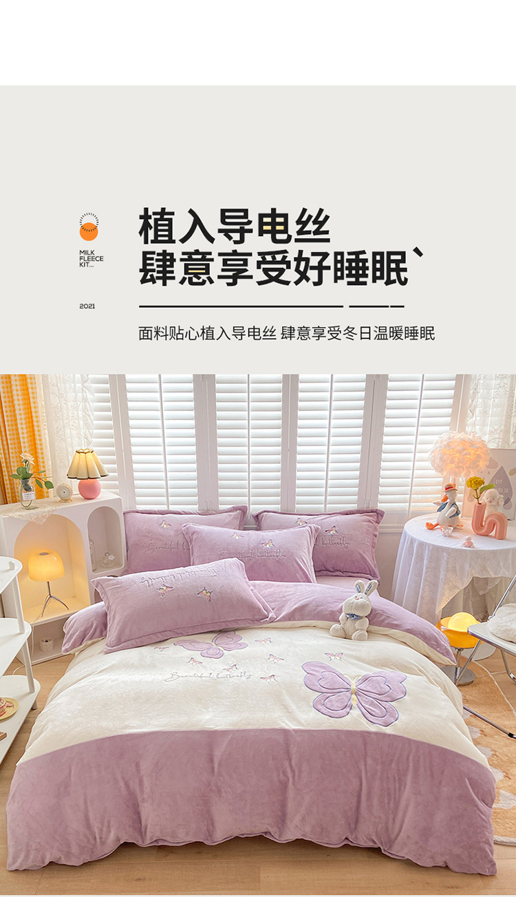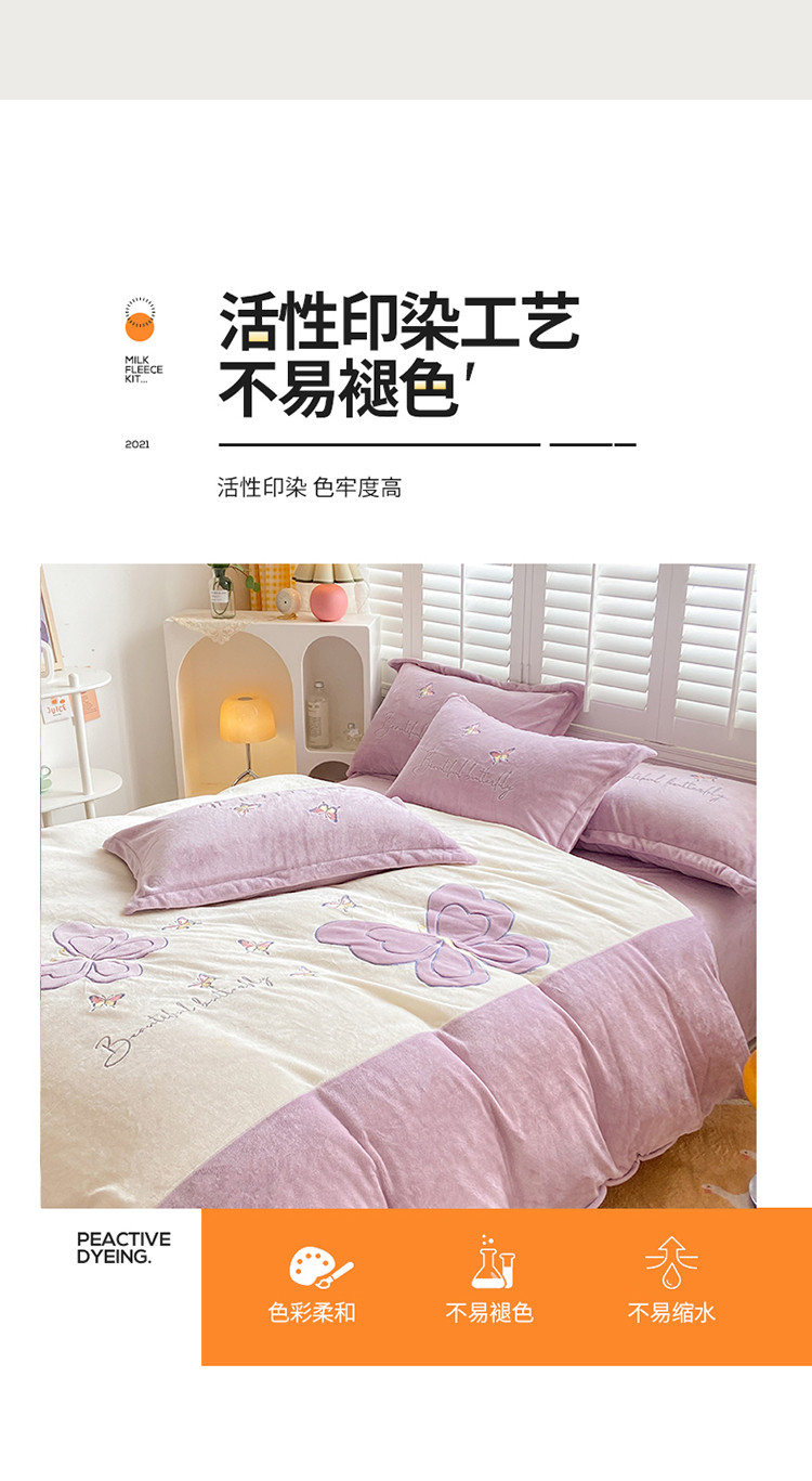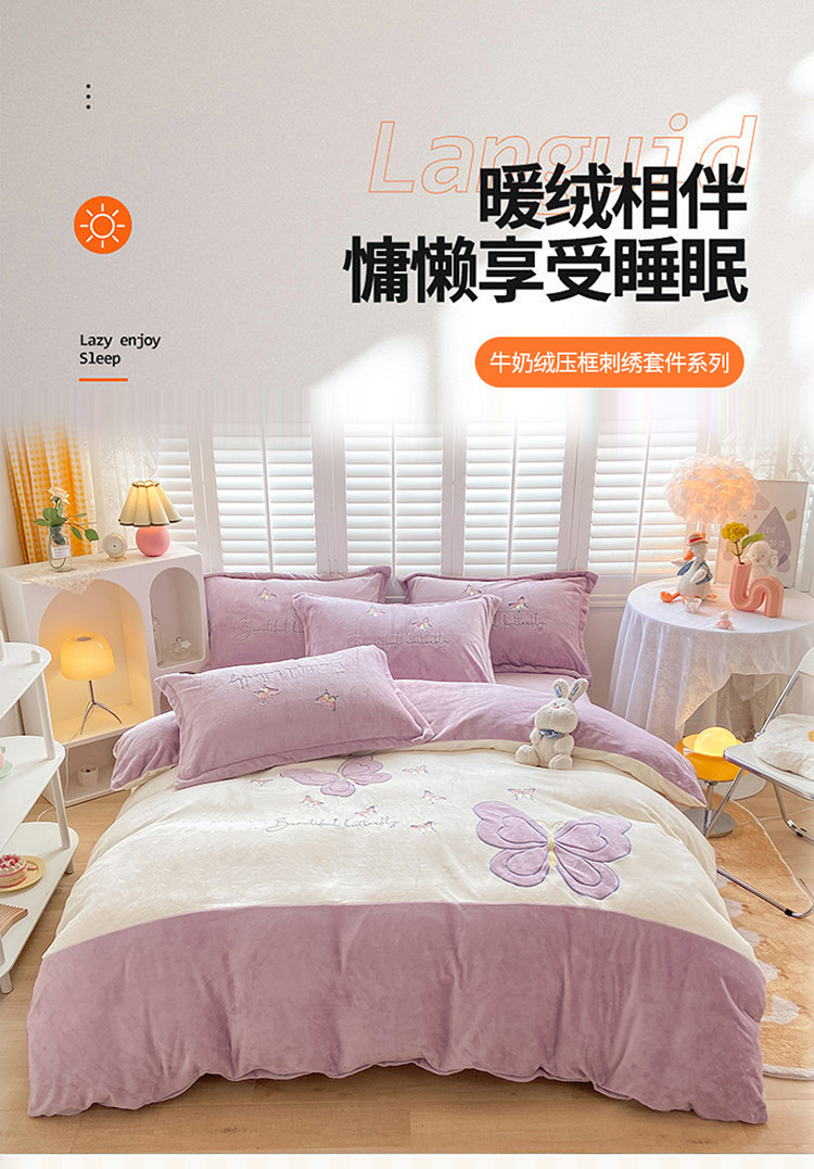 当前位置: 91家纺网 > 商品网购 > 床品套件 > 四件套 > 牛奶绒四件套 > 你好美丽 刺绣款200克牛奶绒四件套(含买家秀)蝶雨纷飞紫