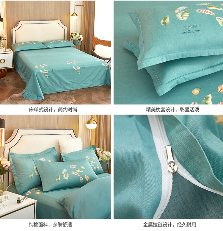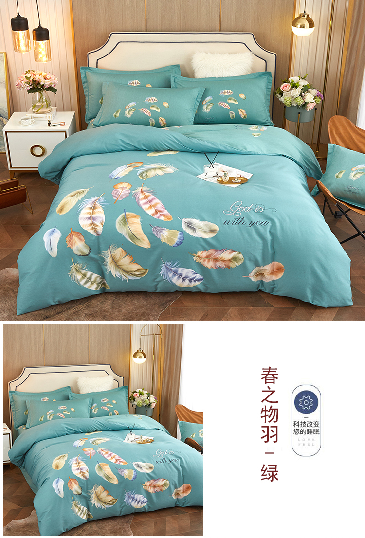 沐白家居2023大版全棉印花四件套 2春之物羽-绿