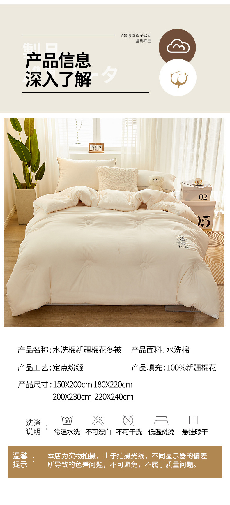 • 91家纺网 家纺一手货源 找家纺 格子铺 2023新款水洗棉棉花冬被 朴棉-白