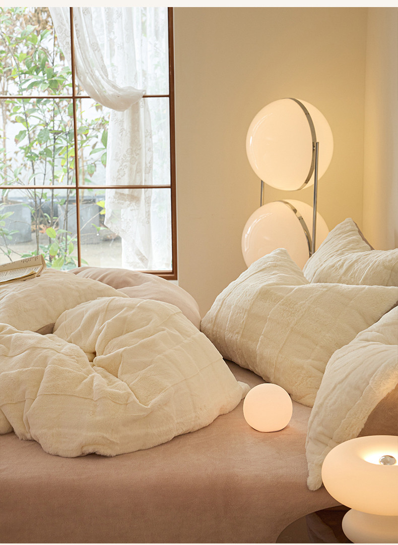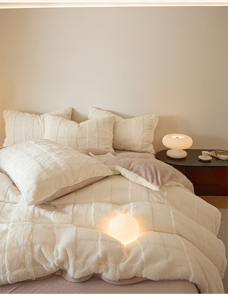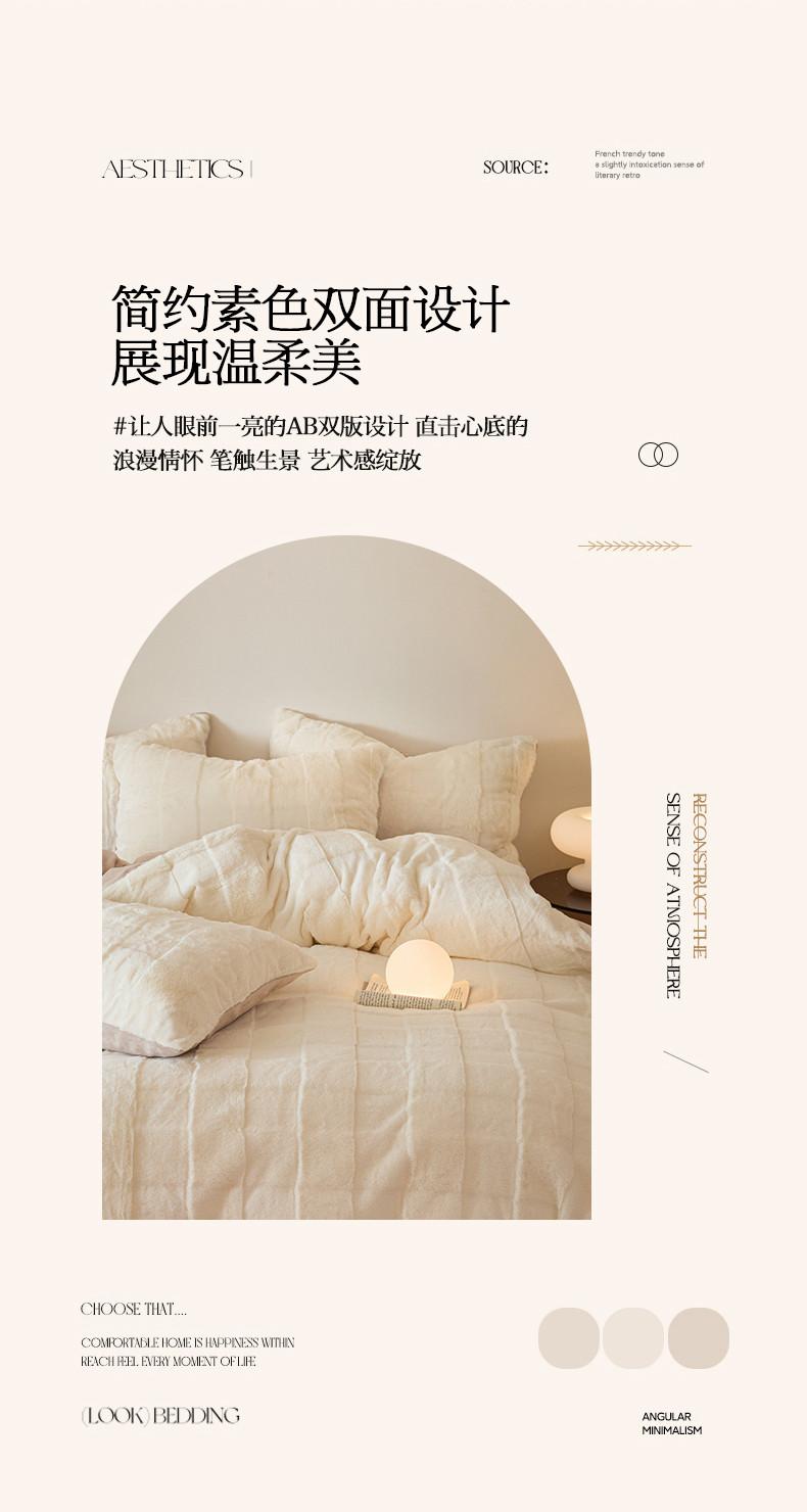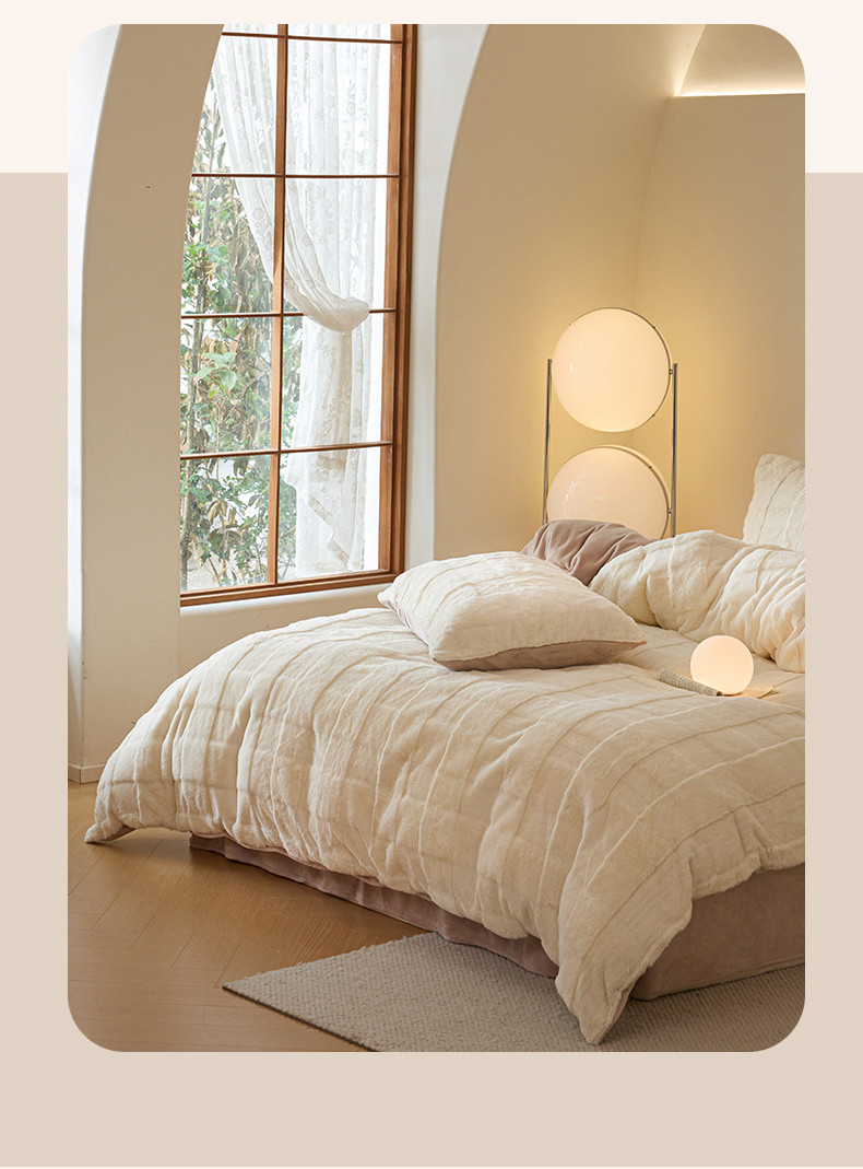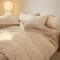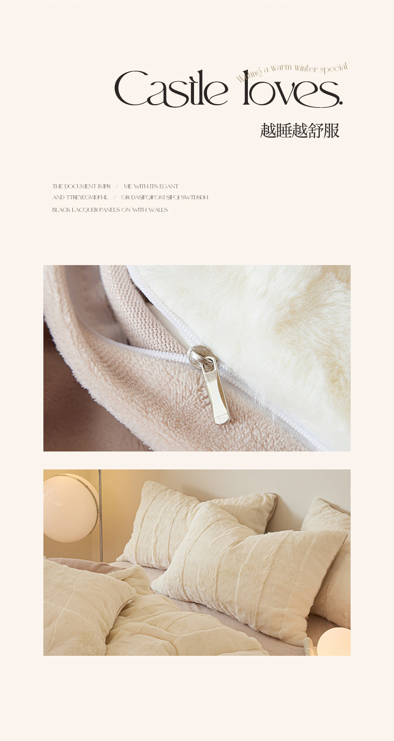 商品名称:沐棉 2023新款秋冬加厚保暖兔毛绒牛奶绒四件套 方格-米拼卡其