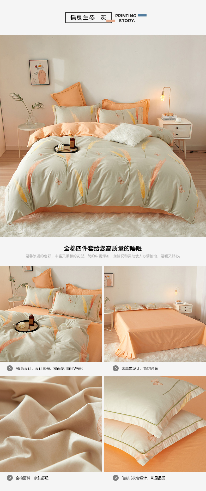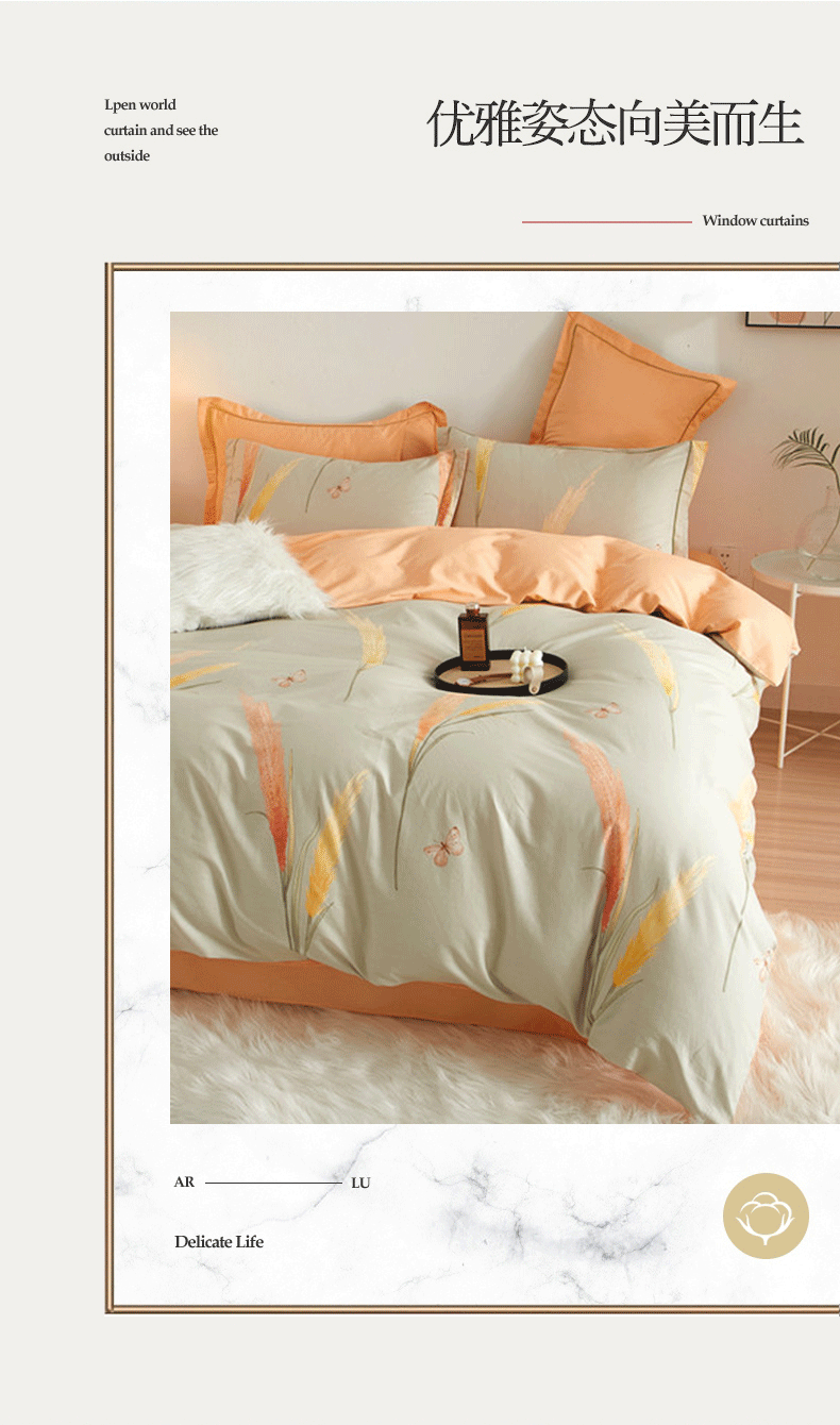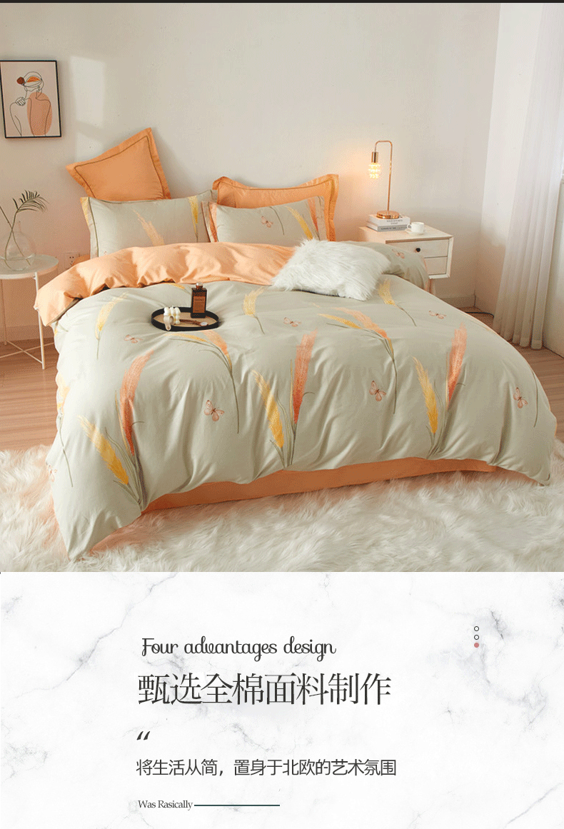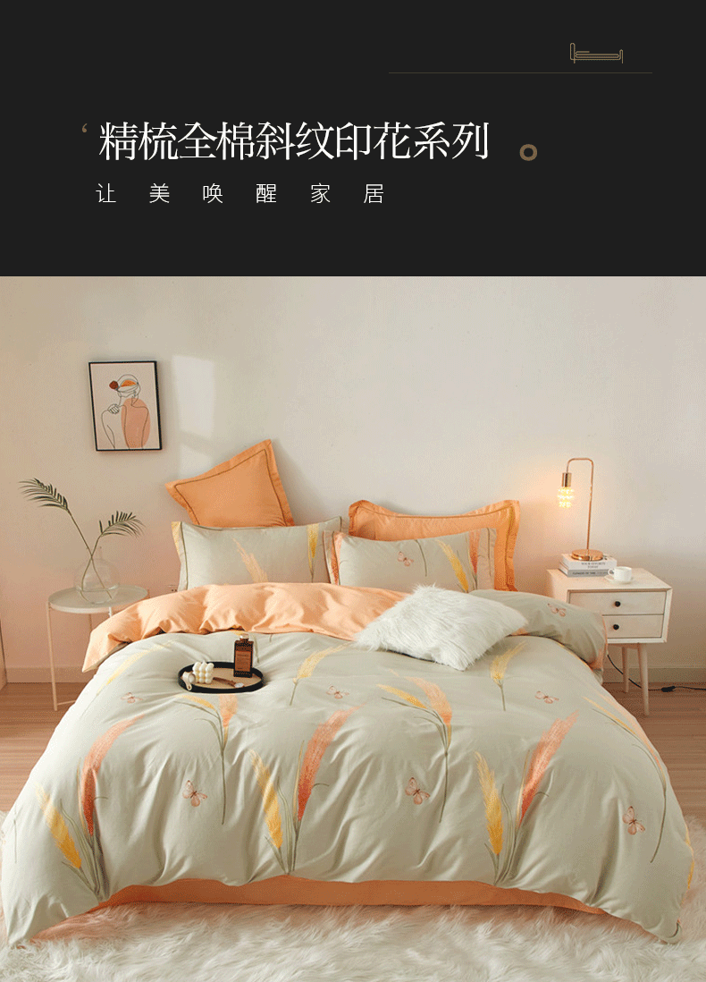 (总)沐白家居 2025新款全棉印花四件套,彩虹心,格雷尔,嘉宇格-咖,嘉宇格-蓝,绿植,落花,漫生活,米洛-灰,南枝-粉