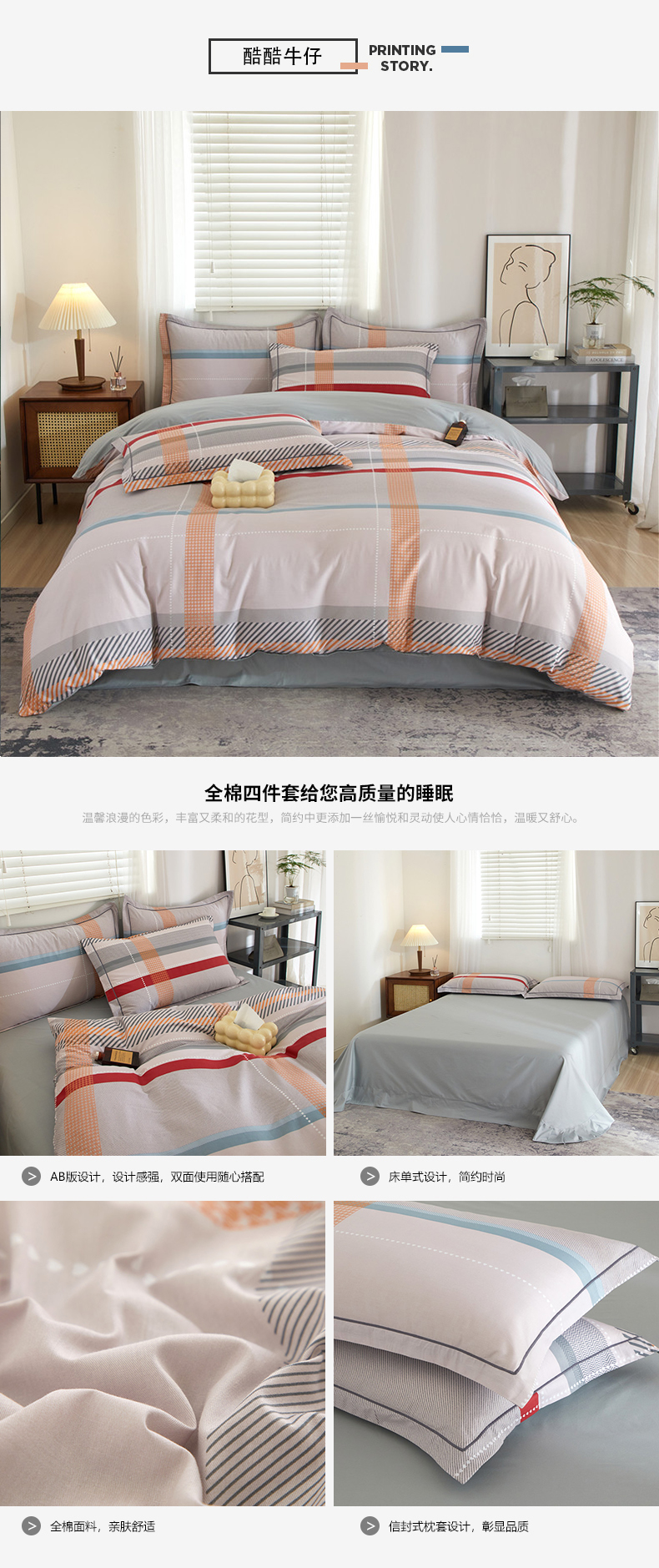 商品名称:沐白 2023全棉13376花卉条格系列印花四件套 酷酷牛仔