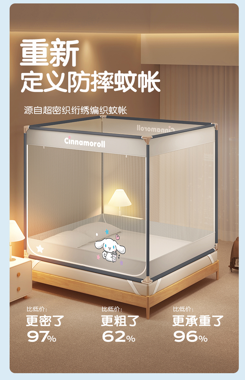 当前位置: 91家纺网 > 商品网购 > 床上用品 > 蚊帐 > 坐床式蚊帐 > 佳梦家纺 2024新款方顶坐床蚊帐系列 三丽鸥系列 奶茶玉桂-灰