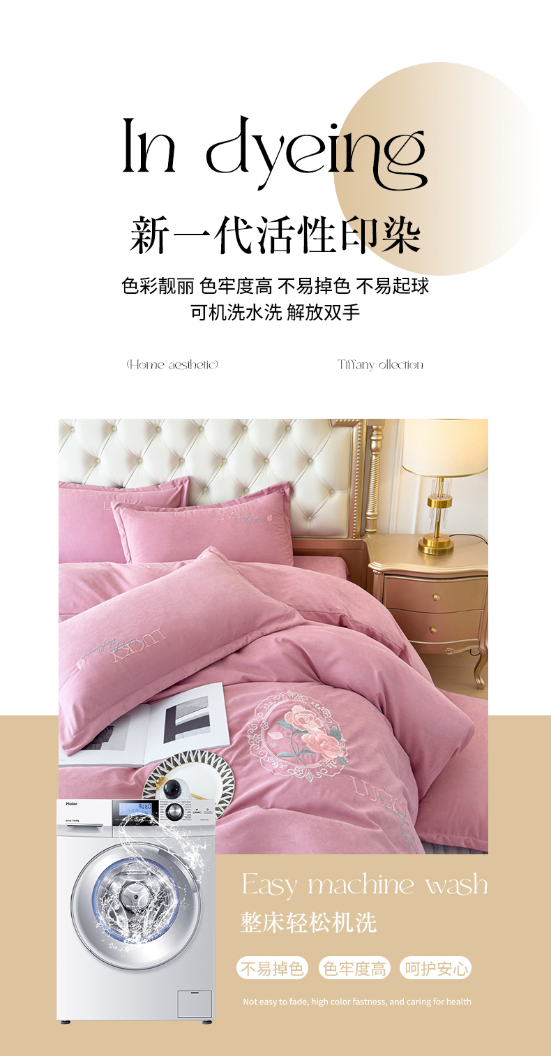 商品名称:逸林家纺《原希尔顿逸林》 2024新款斜纹磨毛四件套水洗斜纹棉蛋白棉绣花四件套 爱丽丝系列 爱丽丝-豆沙粉