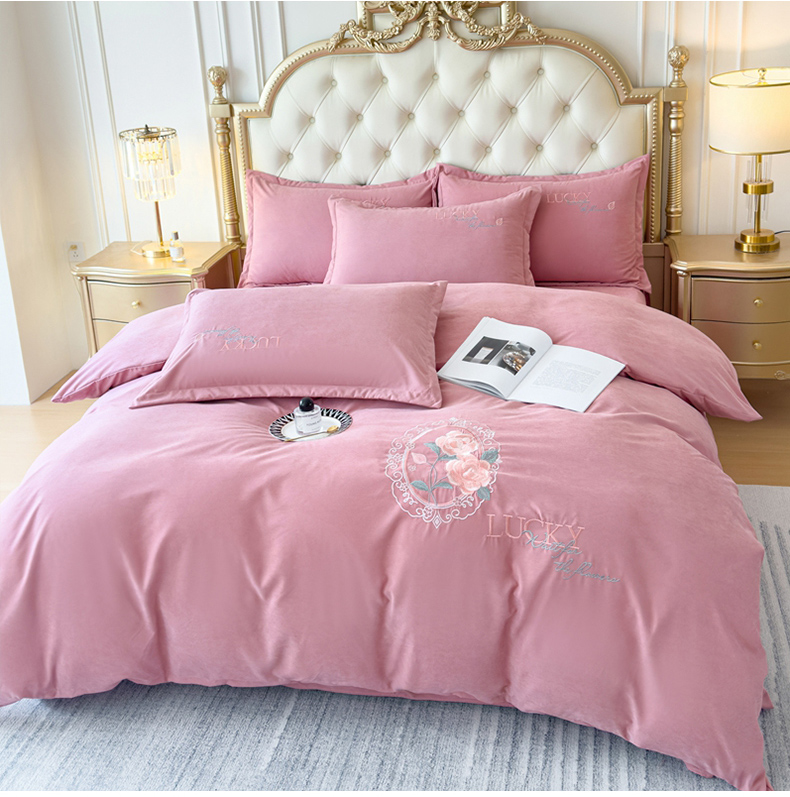 (总)逸林家纺《原希尔顿逸林》 2025新款牛奶绒绣花四件套-可可系列,可可-宾利蓝,可可-豆沙,可可-繁星蓝,可可-粉玉,可可-香芋紫,可可-雅士灰