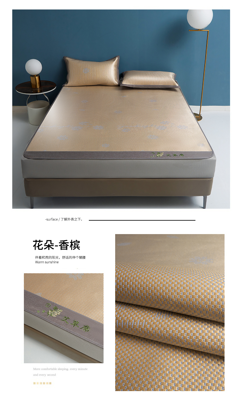 商品名称:席佬大 2025新款香薰·艾草冰藤席三件套系列 花朵-香槟-床笠款