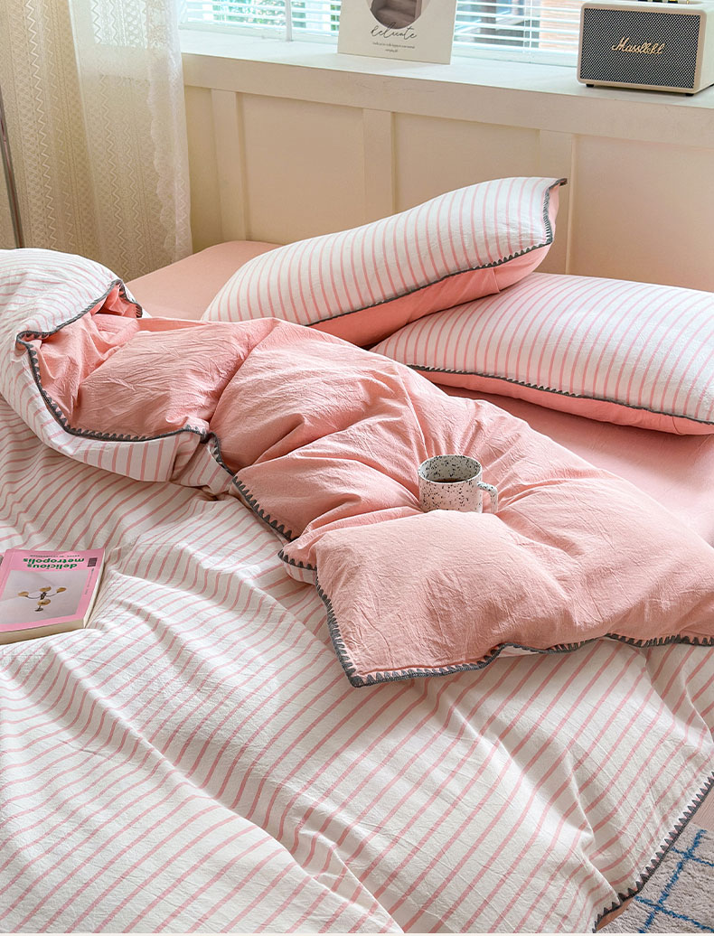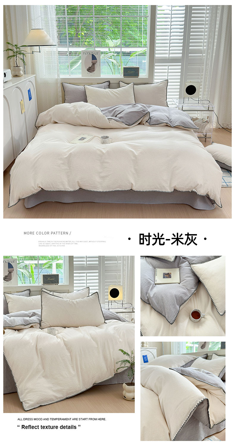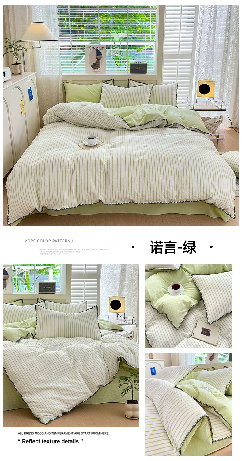 商品名称:(总)晚依家纺 2024新款全棉色织水洗棉贝壳边绣三角针工艺四件套可定制