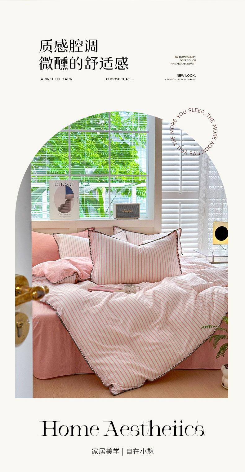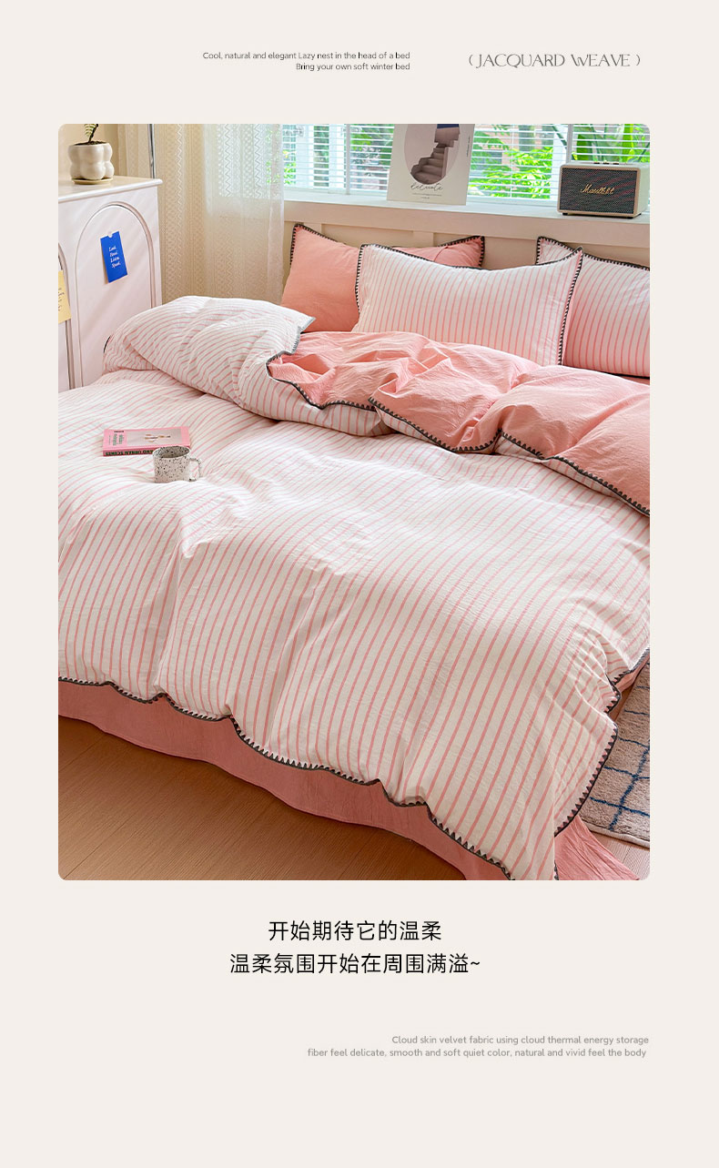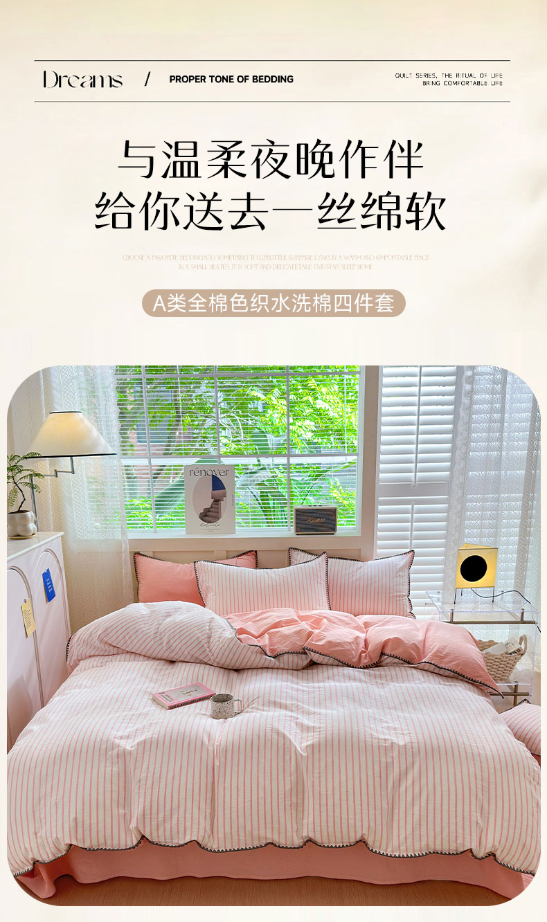(总)晚依家纺 2024新款全棉色织水洗棉贝壳边绣三角针工艺四件套可定制