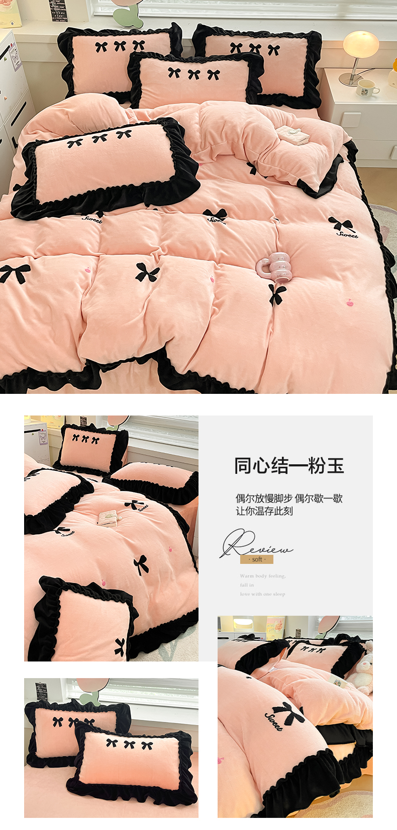 商品名称:亨通家纺 2024新款高克重法式牛奶绒四件套系列-赫本风 赫本风-粉玉