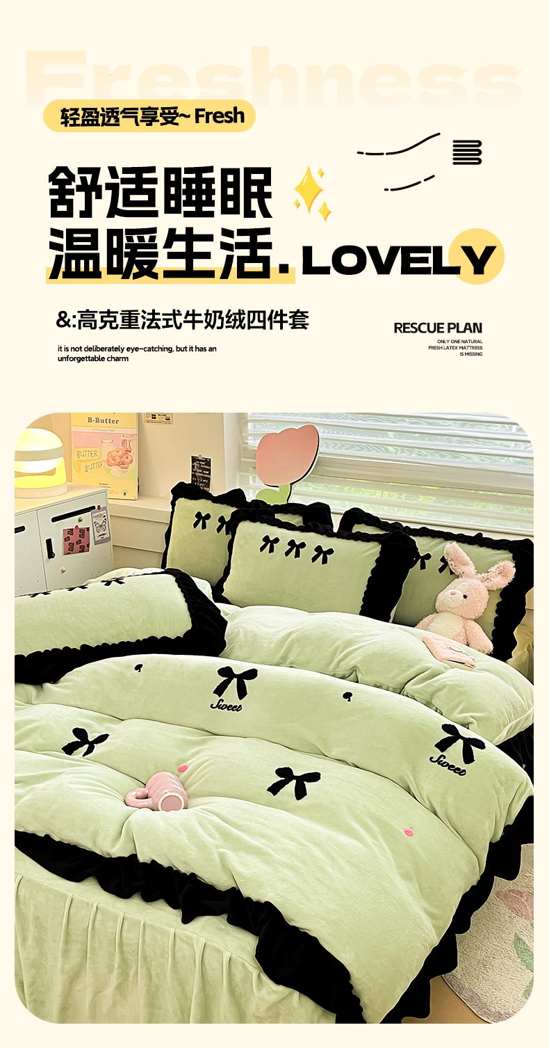 亨通家纺 2024新款高克重法式牛奶绒四件套系列-赫本风 赫本风-粉玉