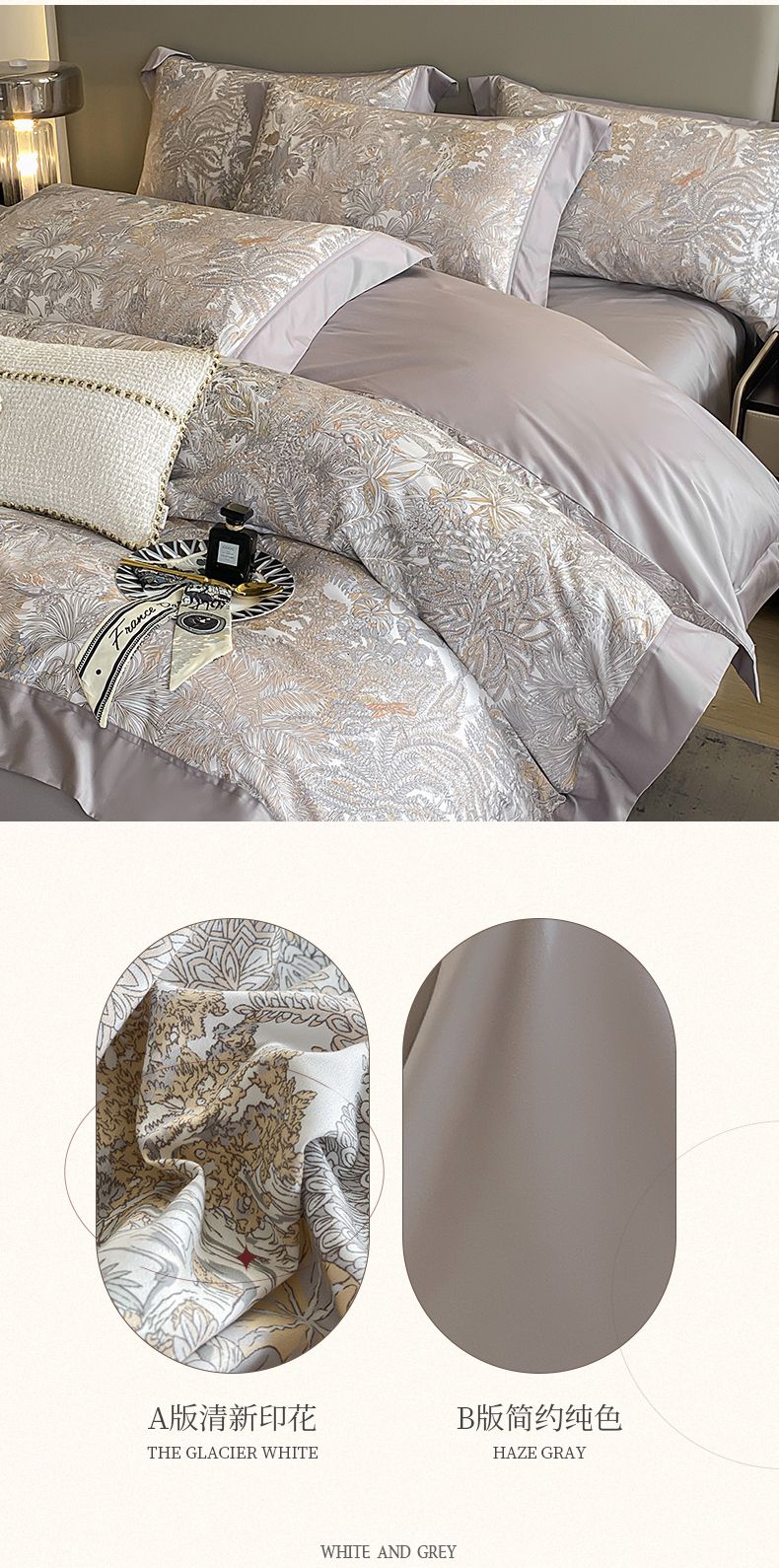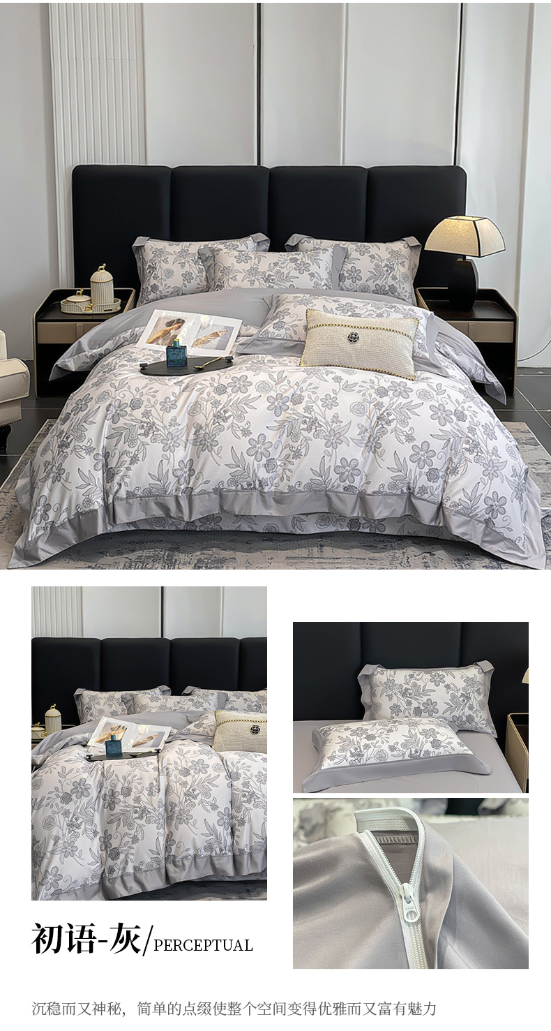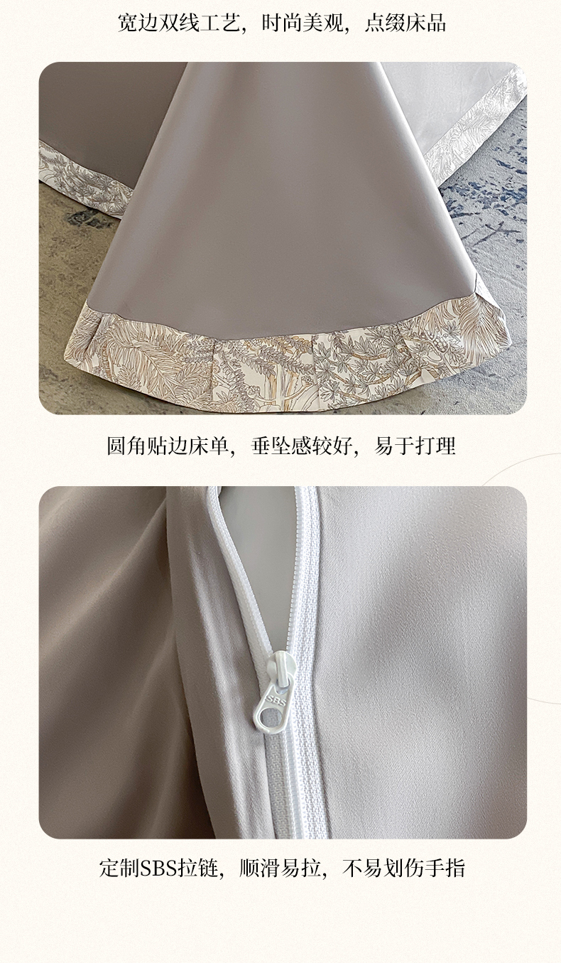 (总)娇逸家居 2025新款高克重A类数码印花牛奶绒双拼边款四件套,采薇灰,扶桑,浅影,秋灵粉,秋灵黄,秋灵绿,舜华粉,采薇米,舜华绿,仙客,栩蝶,璎珞,玉树,芸芙