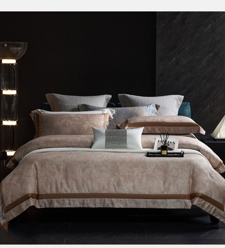 榻尚家居 2024新款贡缎匹马棉色织大提花四件套 摩洛哥花园 香槟