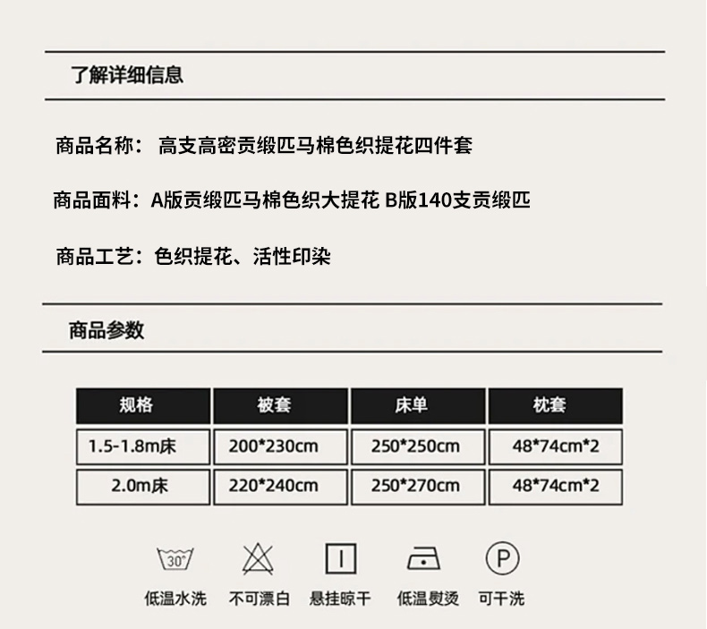 商品名称:榻尚家居 2024新款贡缎匹马棉色织大提花四件套 摩洛哥花园 香槟