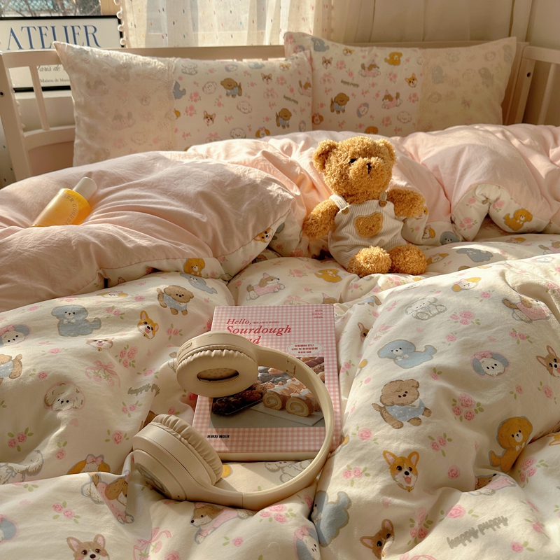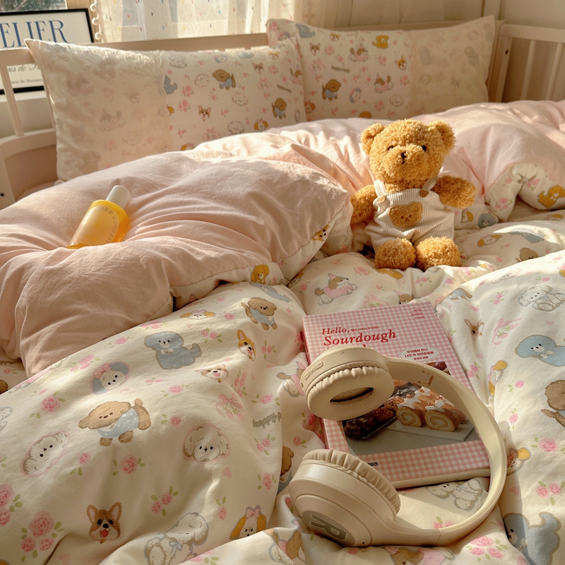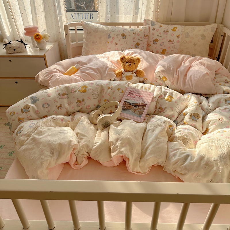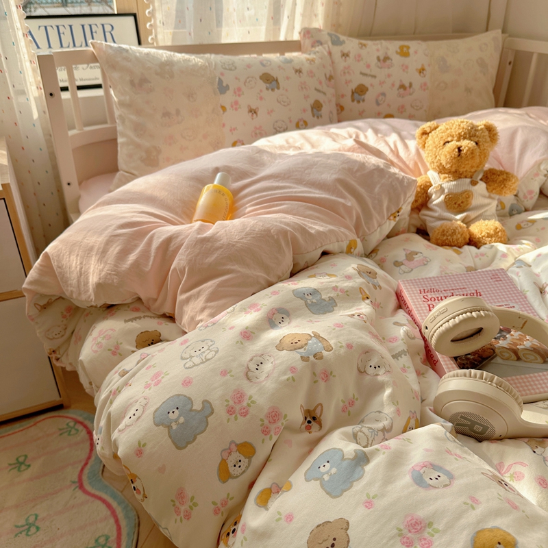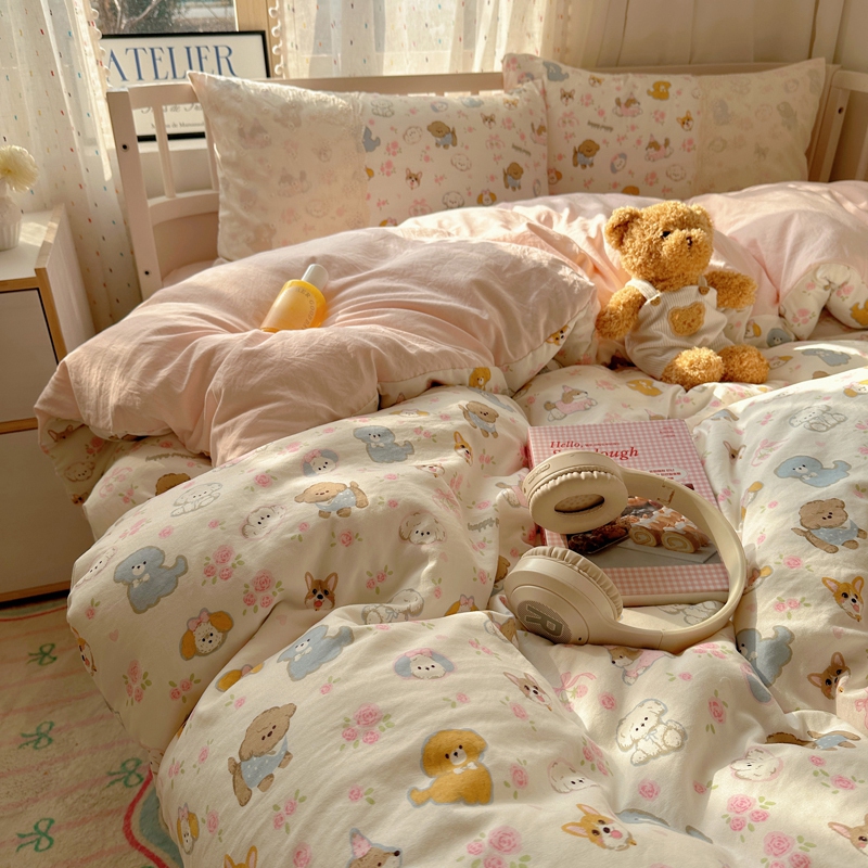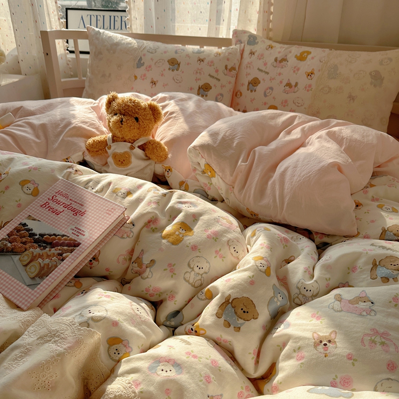 (总)顾里家纺 2026春夏新款ins韩风印花贝壳针双层纱四件套,啵啵蝴蝶结,啵啵猫咪,彩色啵啵,粉米兔,浆果梦,蓝条爱心,曲奇小熊,碎花兔熊,雾屿动物,小南瓜,星月童话,雪瑞纳仔,樱桃蝴蝶结,芋泥腊肠狗,栀夏小兔,治愈动物,治愈星星