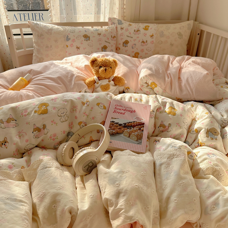 顾里2025新款蕾丝花边云感双层纱套件四件套 碎花狗狗