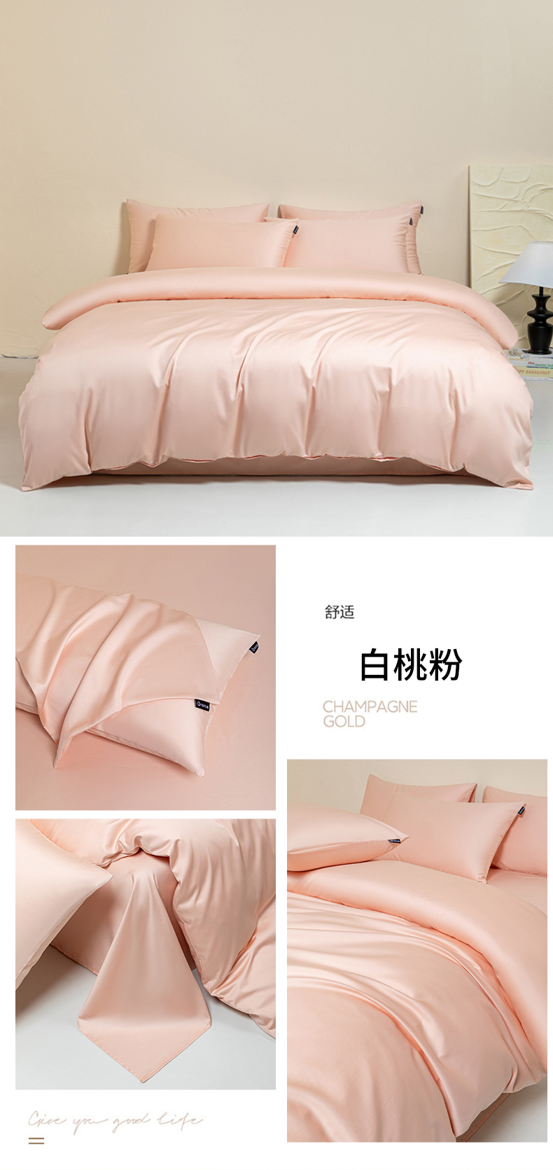 当前位置: 91家纺网 > 商品网购 > 床品套件 > 四件套 > 贡缎全棉四件套 > 舒慕家纺 2025新款100s高支贡缎长绒棉纯色四件套双拼四件套(送包装) 白桃粉