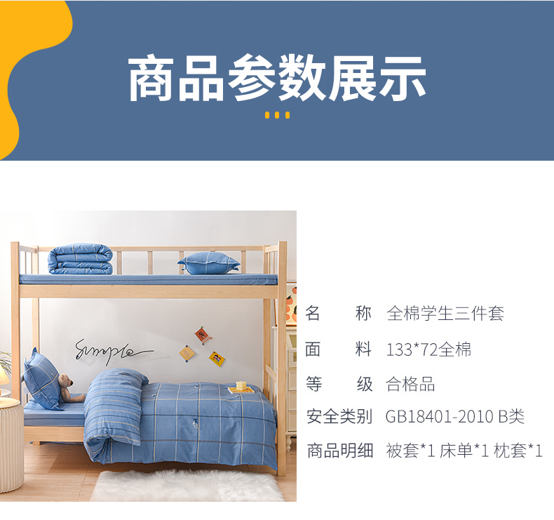 三件套+4斤棉花被+3斤棉花垫(90*200)+枕芯 | ¥153.00 |
