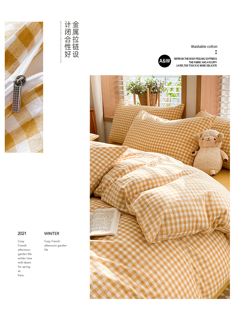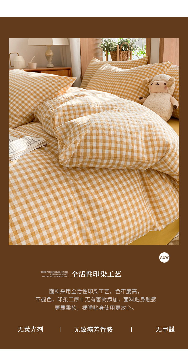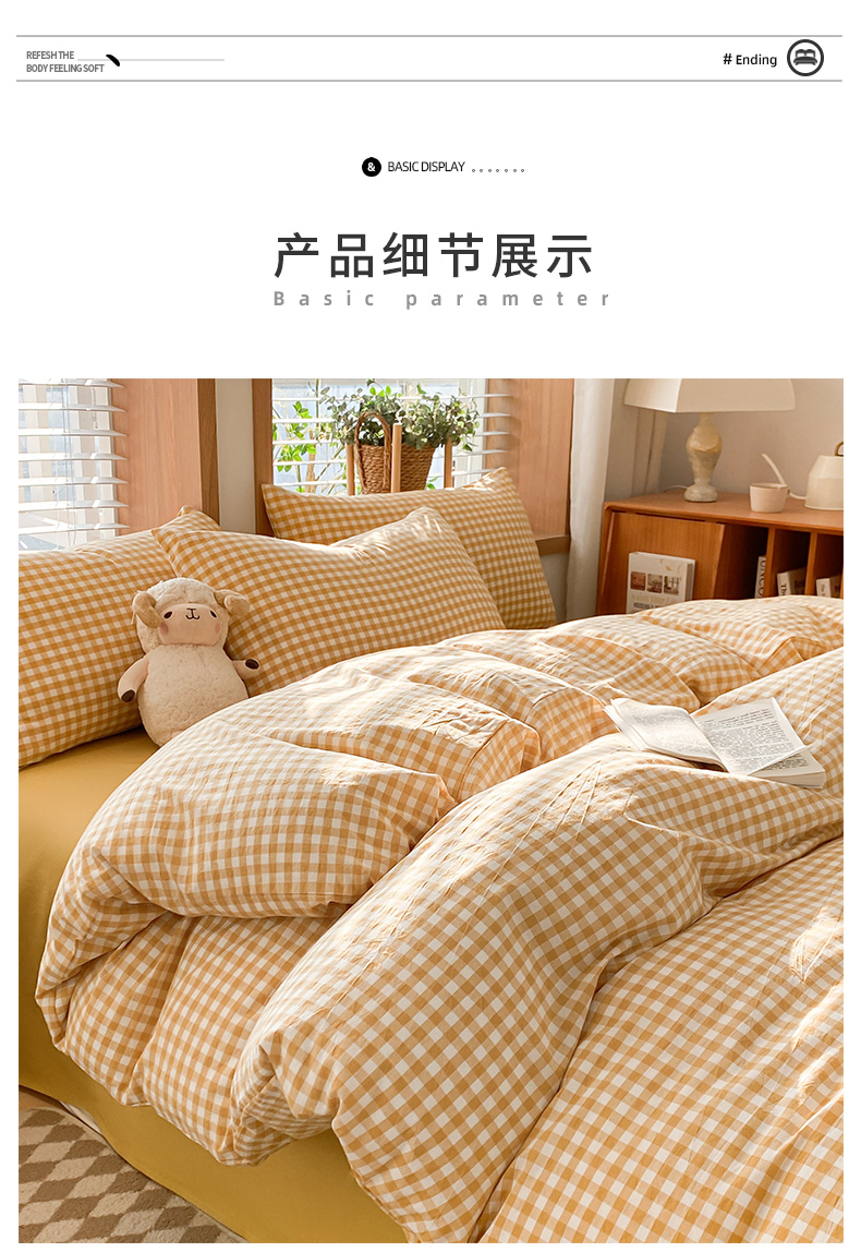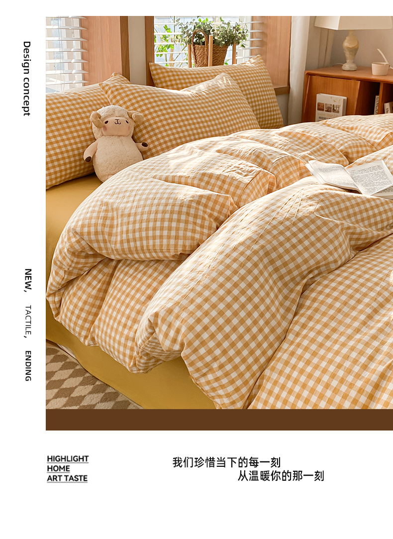 当前位置: 91家纺网 > 商品网购 > 床品套件 > 四件套 > 色织四件套 > 木子家纺 2025新款简约日式40支全棉色织水洗棉四件套 小格-黄