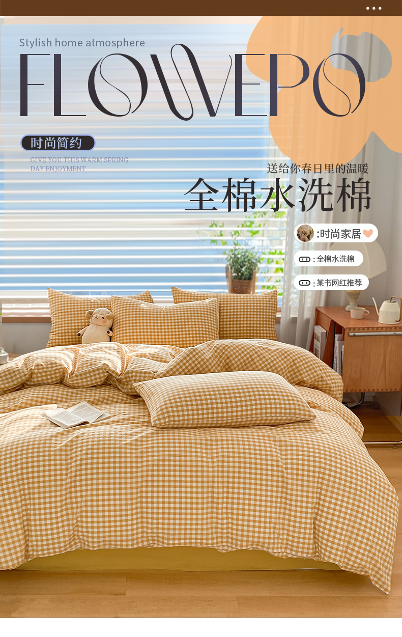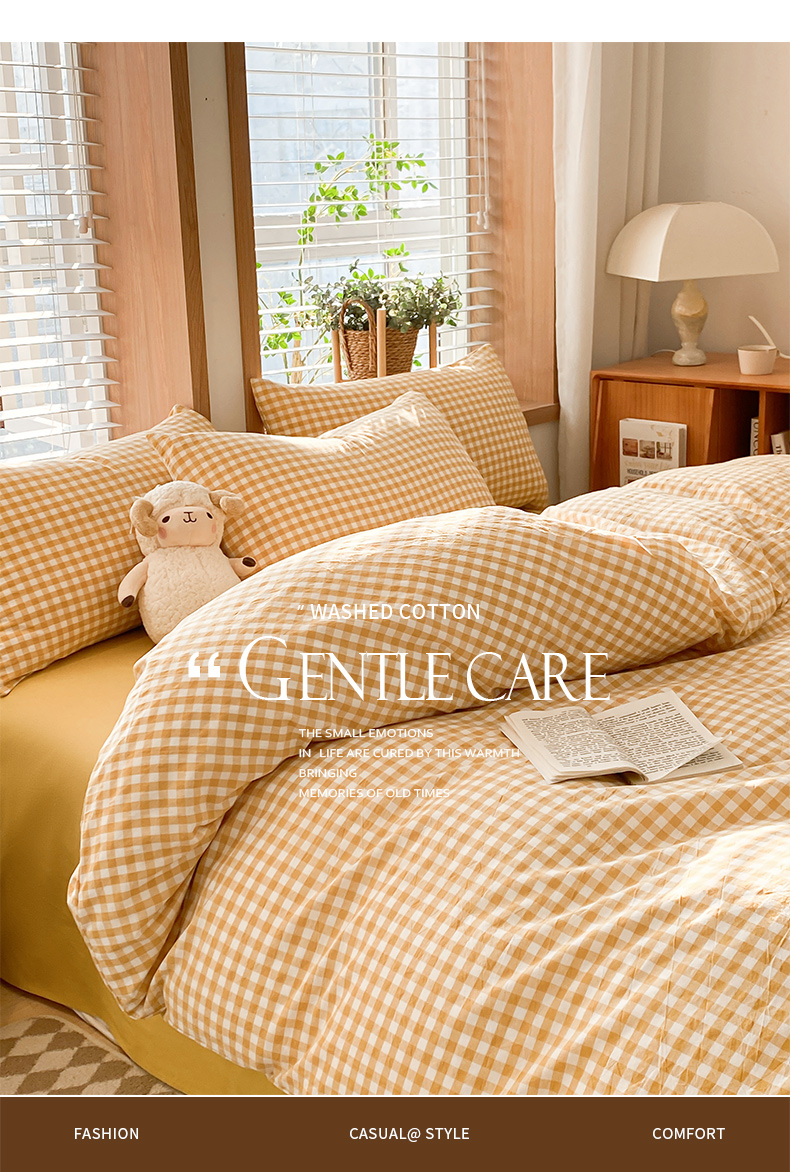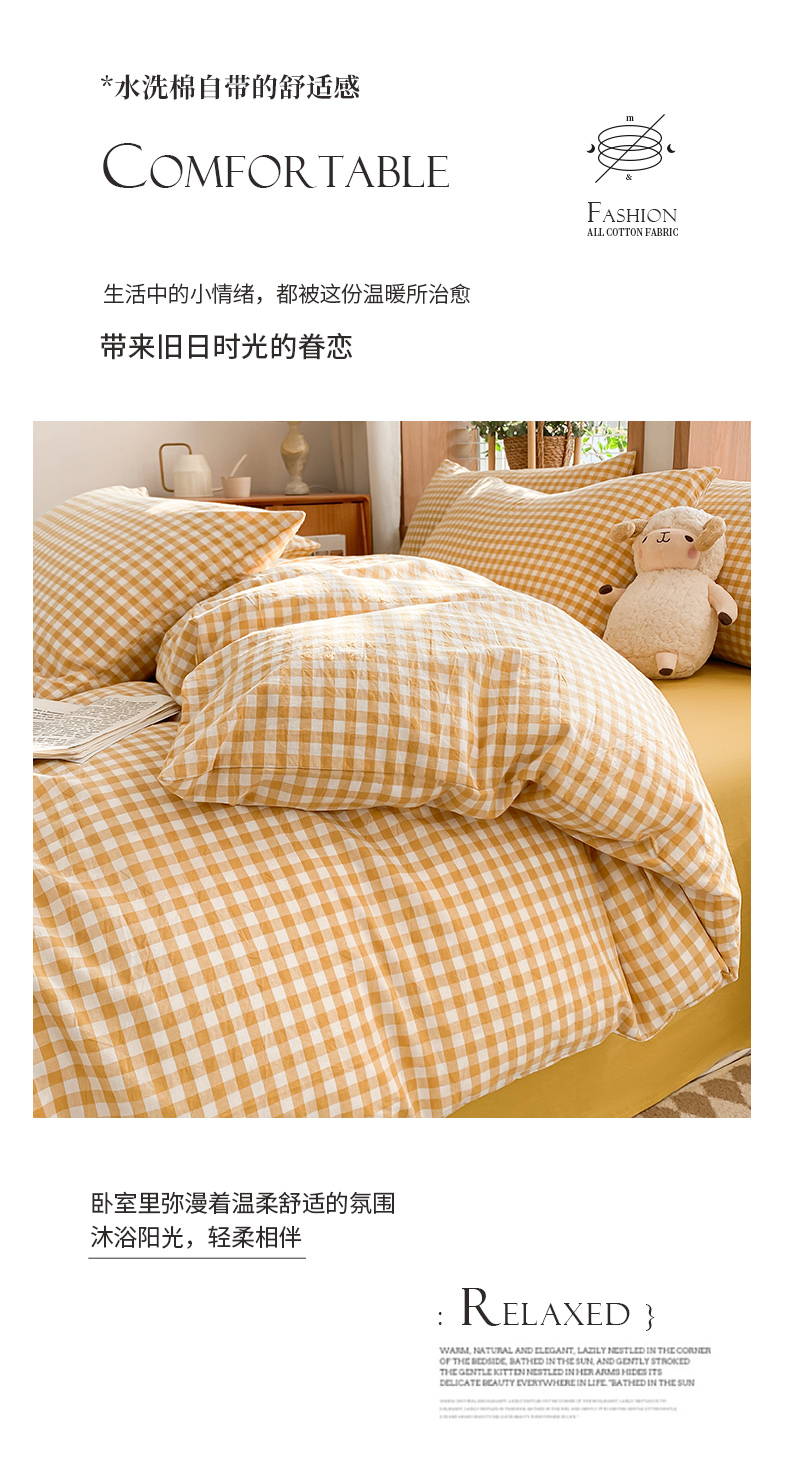 当前位置: 91家纺网 > 商品网购 > 床品套件 > 四件套 > 色织四件套 > 木子家纺 2025新款简约日式40支全棉色织水洗棉四件套 小格-黄