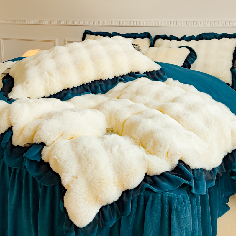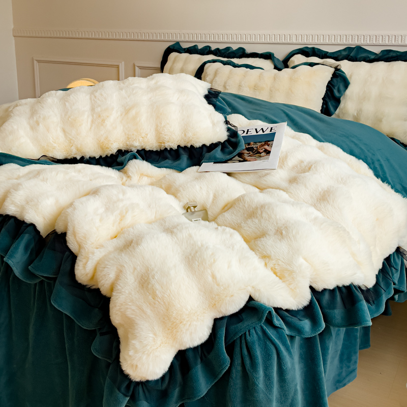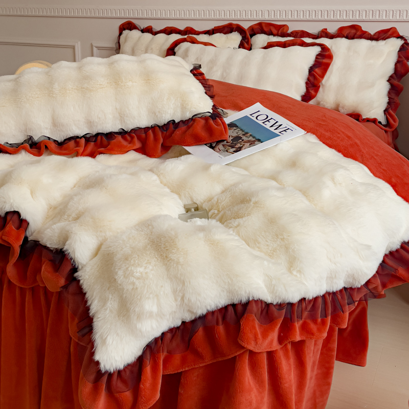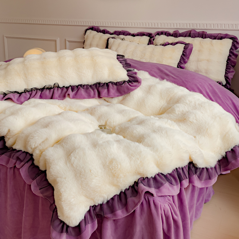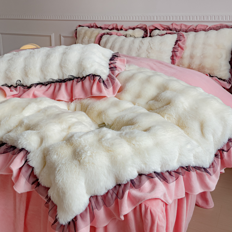 • 91家纺网 家纺一手货源 找家纺 (总)睡美人 2025新款韩版印花牛奶绒床裙款四件套,宝格-粉,贝贝熊-咖,草莓派,格调豆沙,玫瑰情缘,天天向上 黄