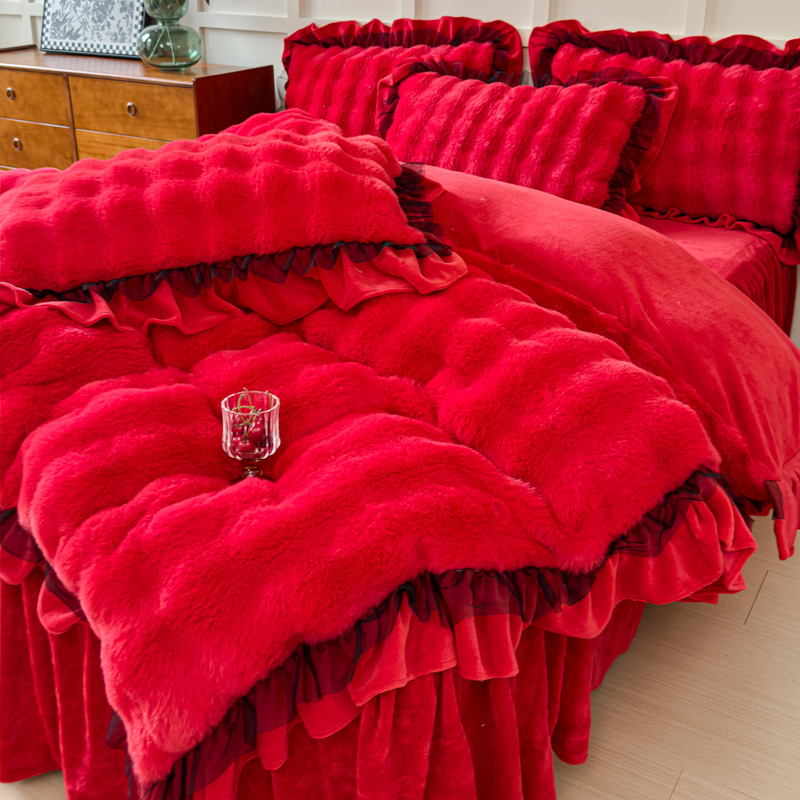• 91家纺网 家纺一手货源 找家纺 (总)睡美人 2025新款亲肤舒适牛奶绒单品系列单床裙单品床裙单件床裙,车厘子红,大红色,公主粉,酒红色,孔雀绿,气质灰,石榴红,星空蓝,薰衣紫,阳光橙