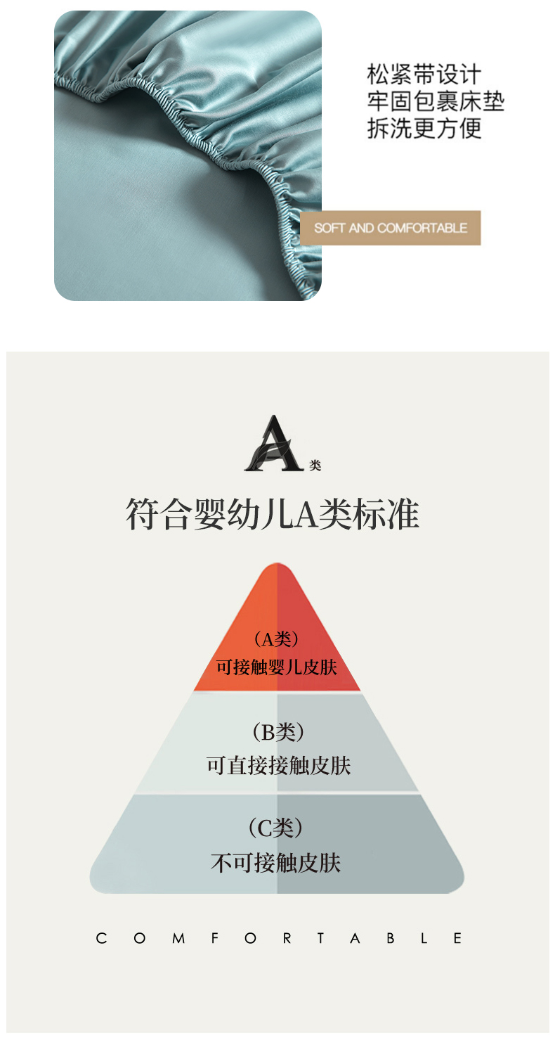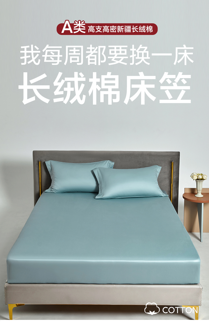 商品名称:柔觉家纺 柔系列A类100支单品床笠 青竹蓝
