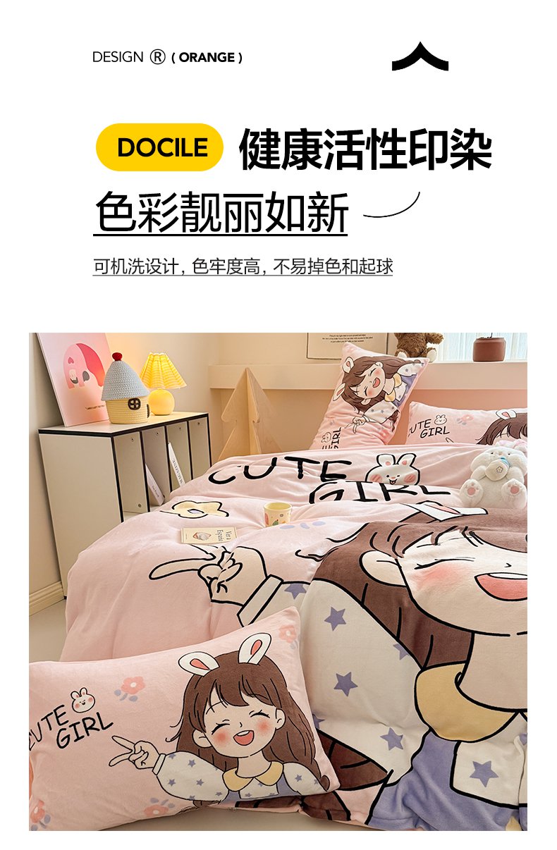商品名称:潮邦创意家居 2025新款大版卡通牛奶绒四件套 活泼女孩