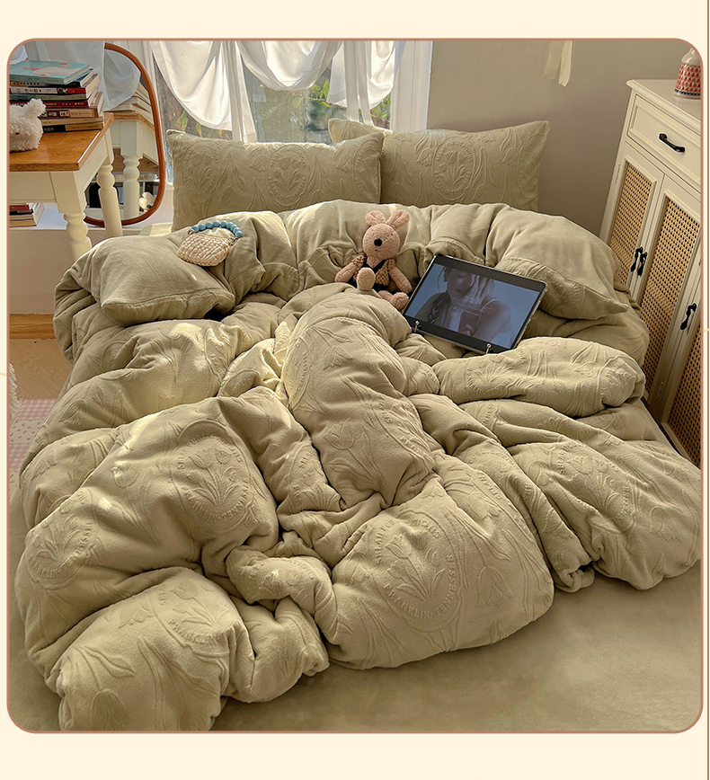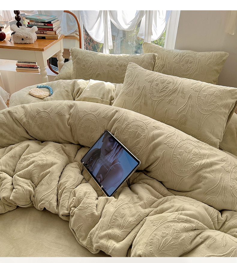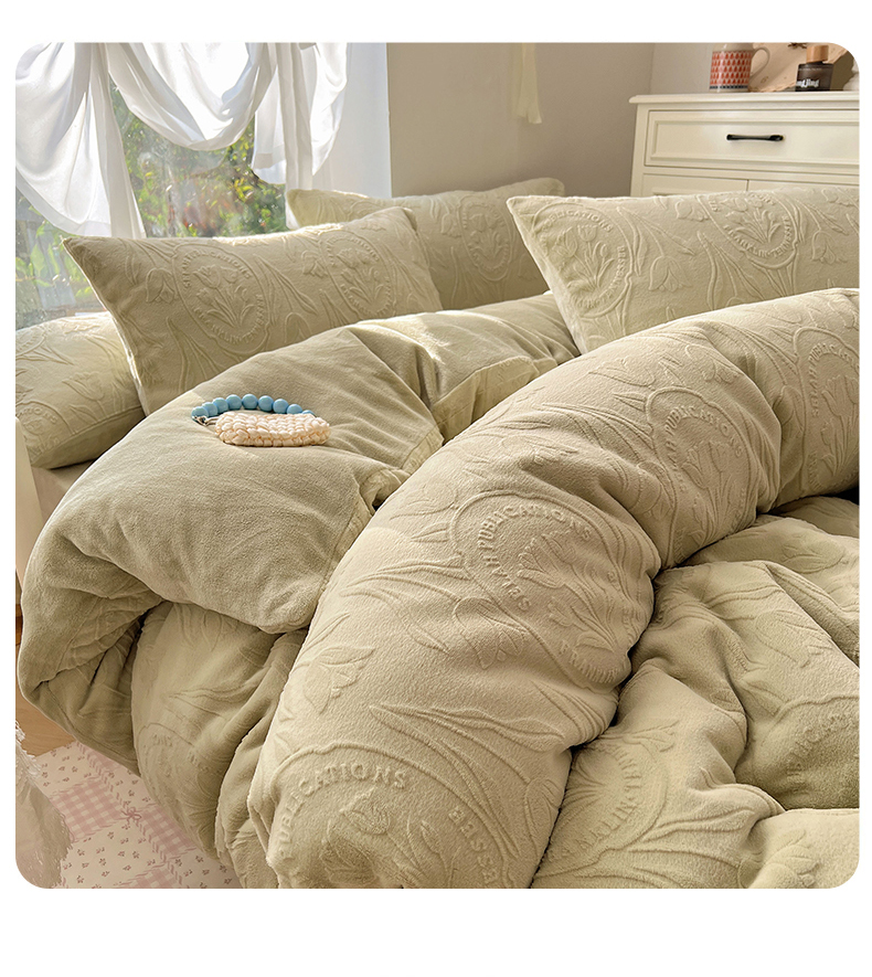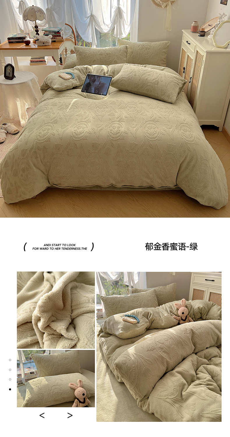 当前位置: 91家纺网 > 商品网购 > 床品套件 > 四件套 > 牛奶绒四件套 > 六巷胡同 2025新款INS博主风郁金香立体A类全消光雕花牛奶绒四件套 郁金香蜜语-绿