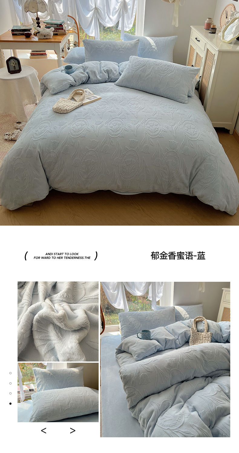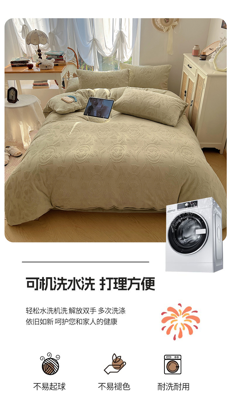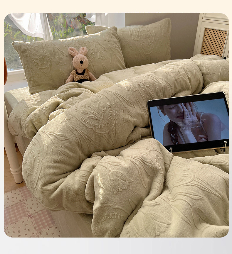 当前位置: 91家纺网 > 商品网购 > 床品套件 > 四件套 > 牛奶绒四件套 > 六巷胡同 2025新款INS博主风郁金香立体A类全消光雕花牛奶绒四件套 郁金香蜜语-绿