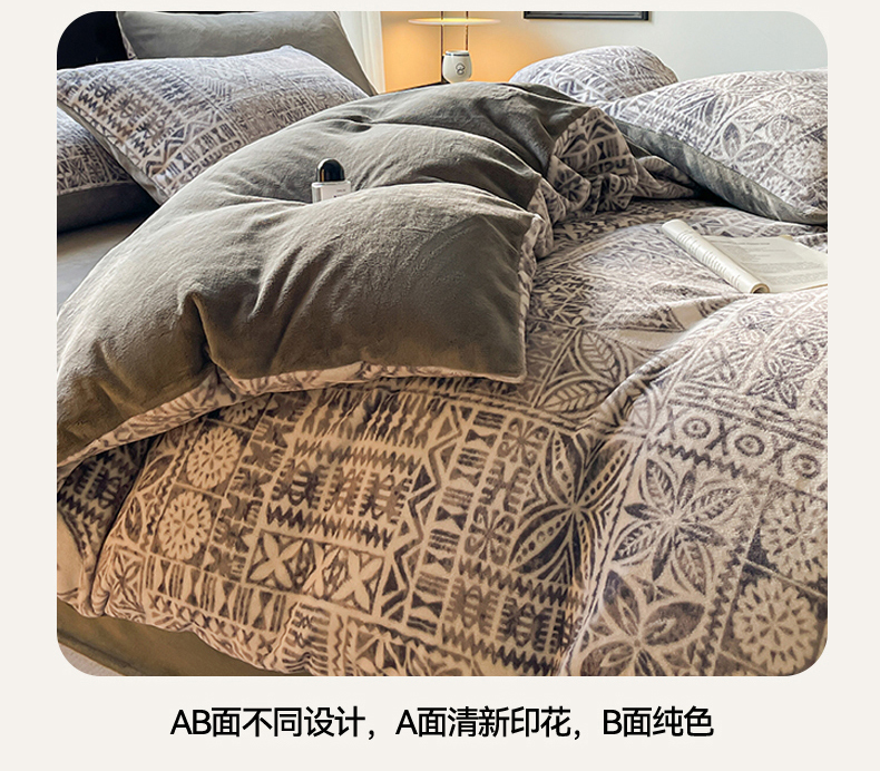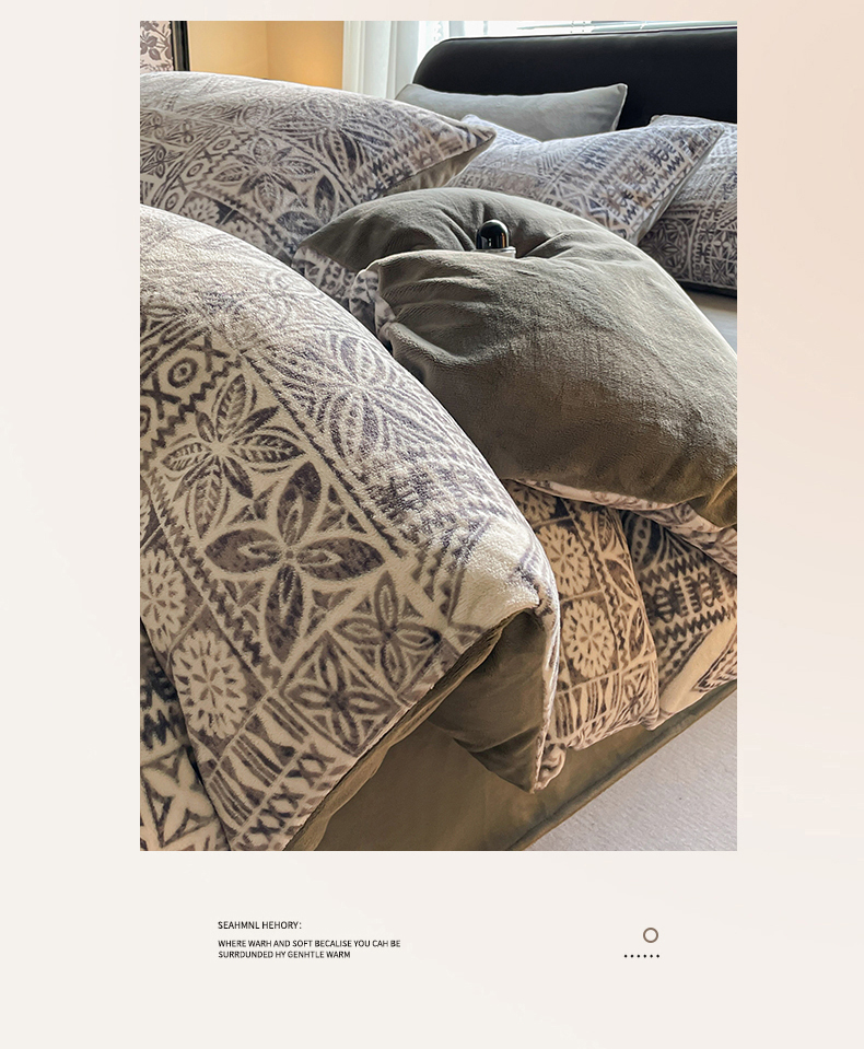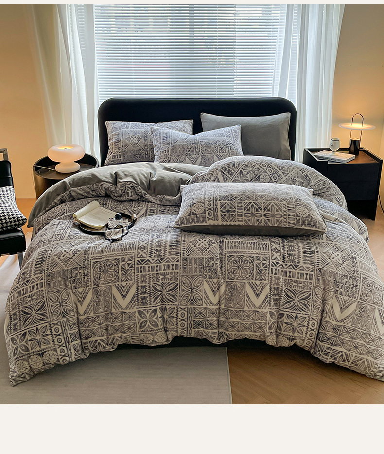 商品名称:本制 2025秋冬新款牛奶绒印花四件套 布洛格-中灰
