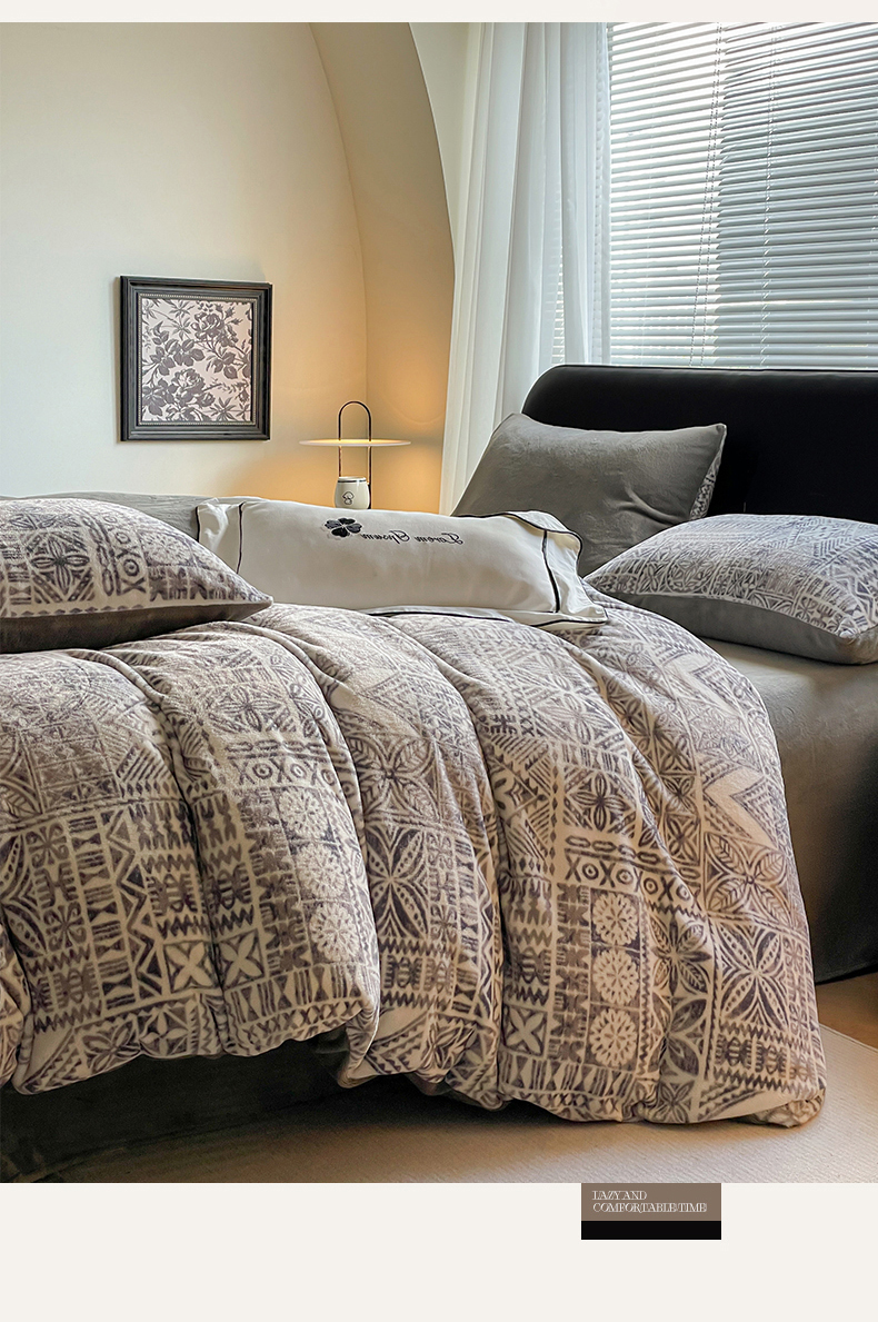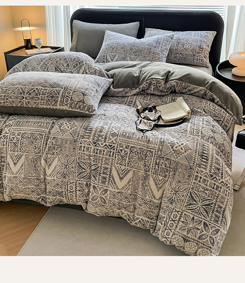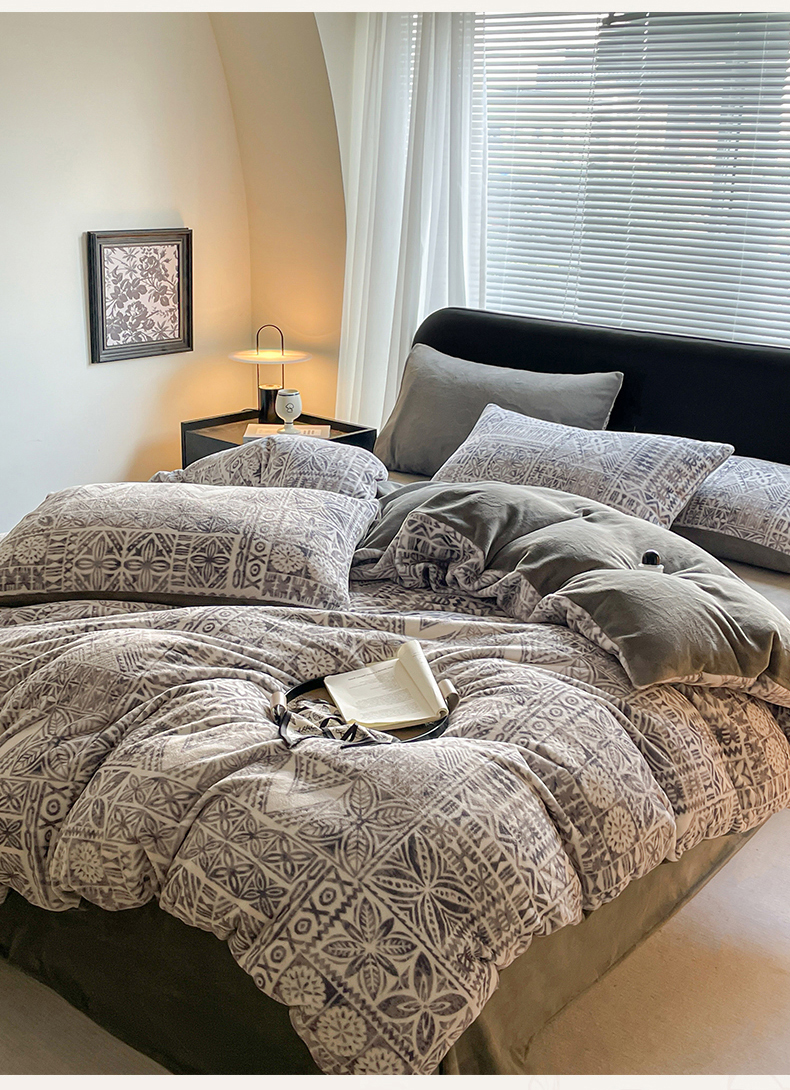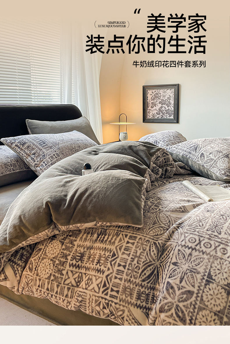 本制 2025秋冬新款牛奶绒印花四件套 布洛格-中灰