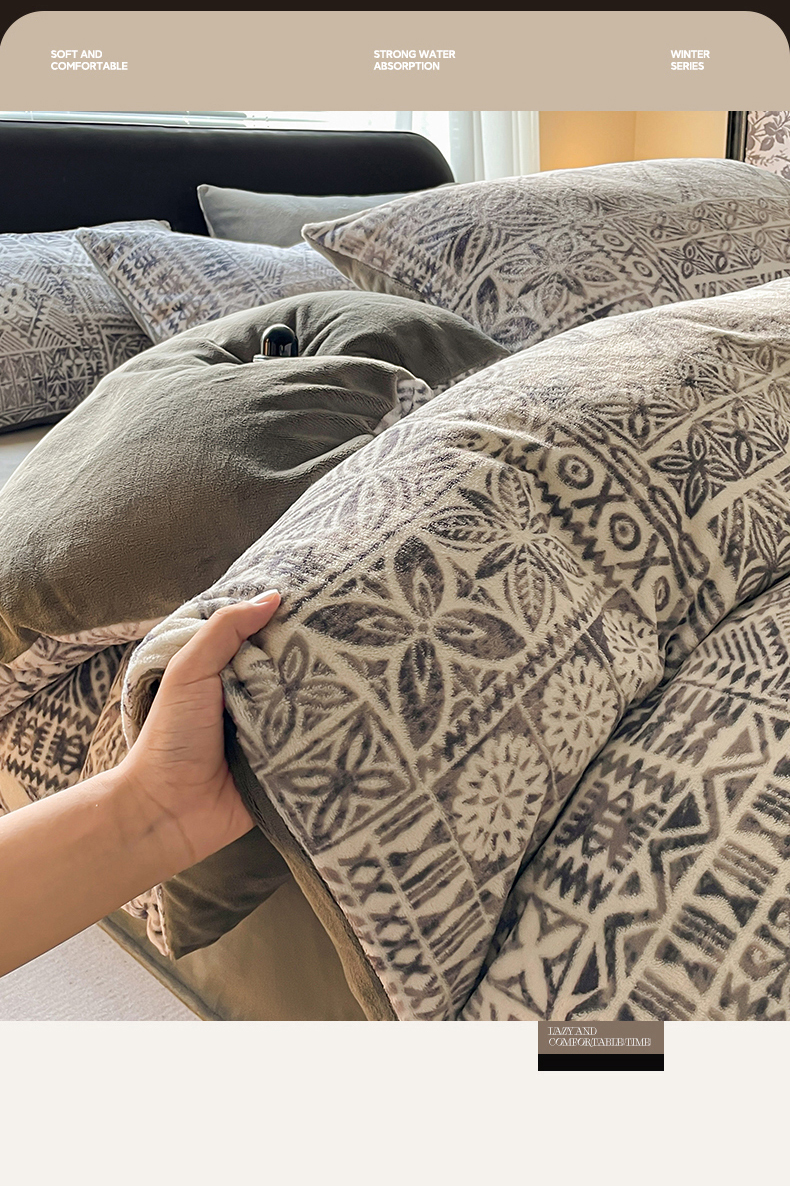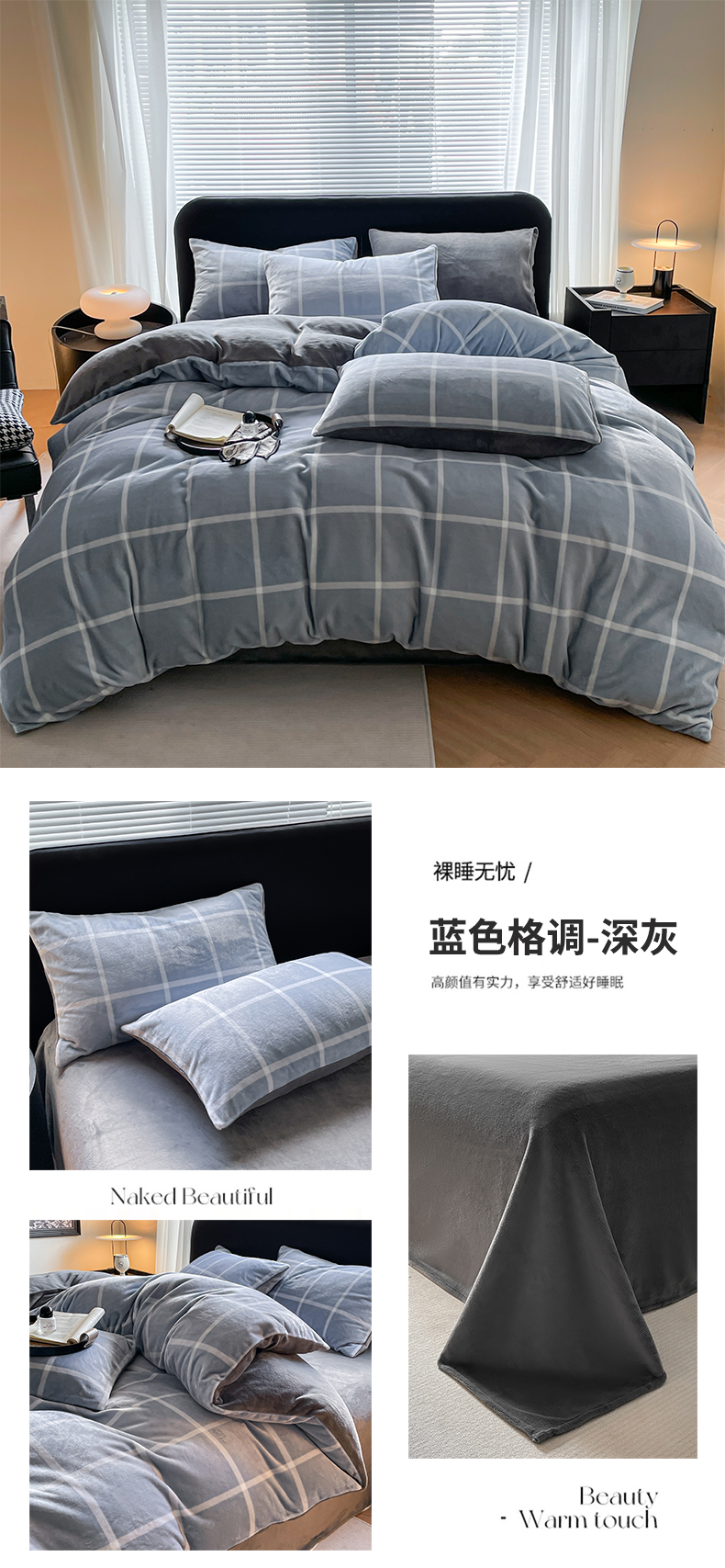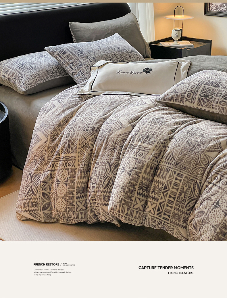 本制 2025秋冬新款牛奶绒印花四件套 布洛格-中灰