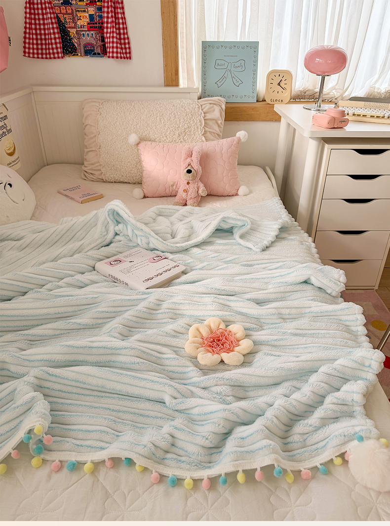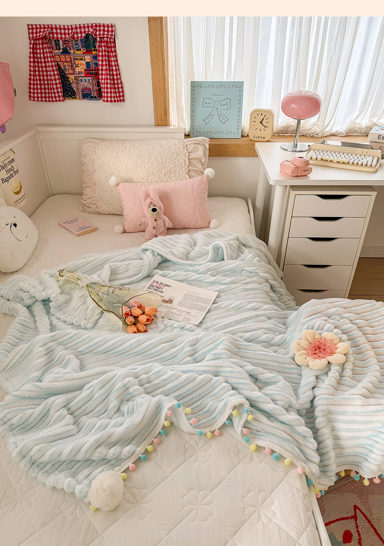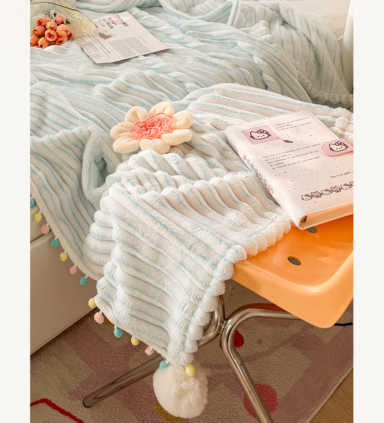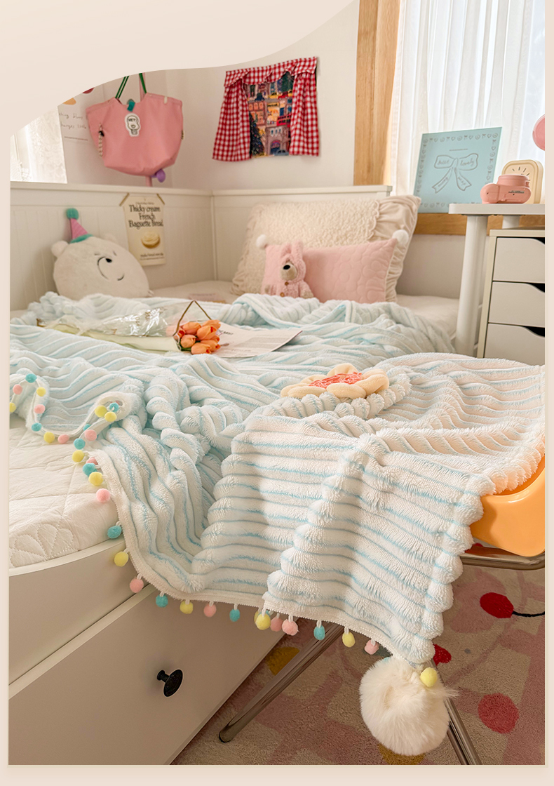 (总)潮邦创意家居 2025新款 奶芙绒流苏球毛毯,薄荷绿,焦糖咖,绵云白,浅蓝灰,深暮灰,甜莓粉