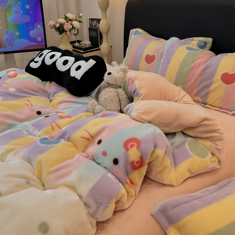 (总)仟网汇 2025新款兔毛绒印花四件套,斑马纹,可爱多,马格丽,魔法学院红,魔法学院蓝,晚秋,小淘气,英伦时尚