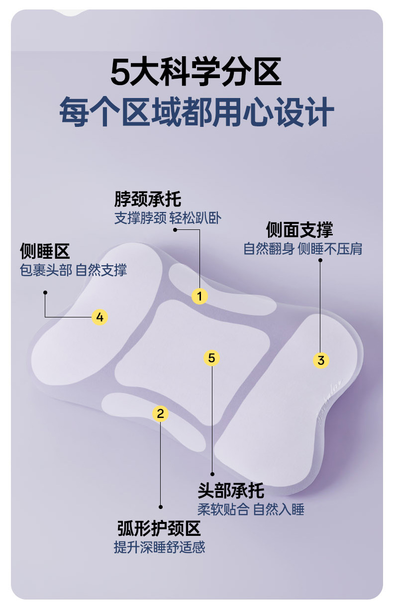 (总)绮甜枕语 2026新款记忆棉枕头护颈椎助睡眠慢回弹记忆棉侧睡分区驼背趴睡枕防塌陷,外贸趴睡枕