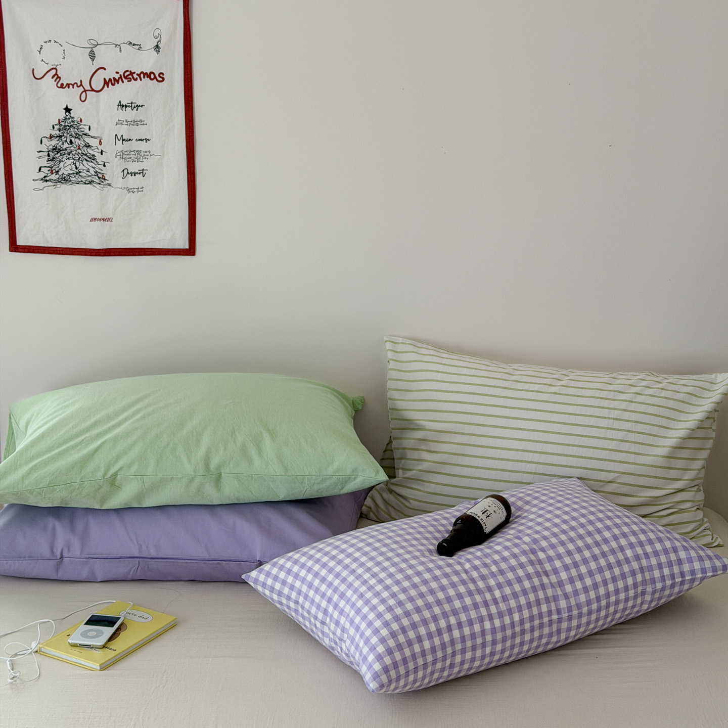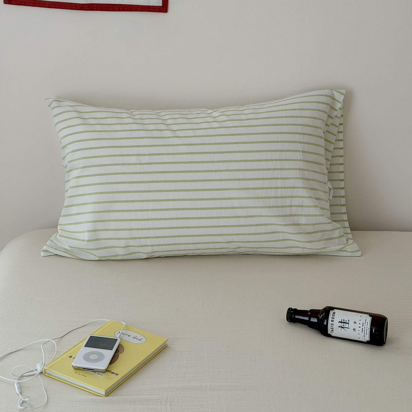 商品名称:艾沁家纺 2026新款全棉纯棉色织水洗棉单品枕套 枕套单件3 绿条